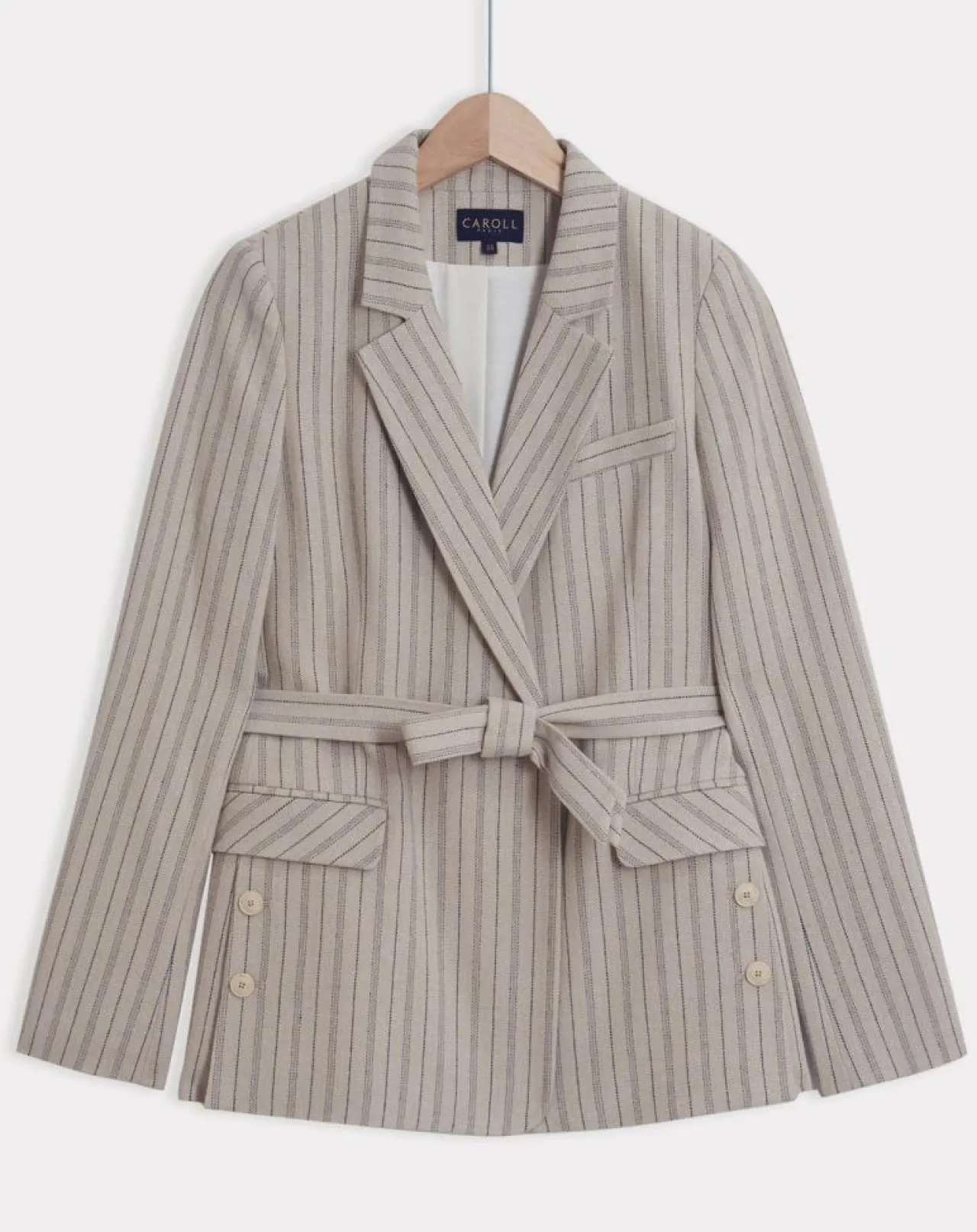 Blazer ceinturé en coton et laine mélangés made in Europe