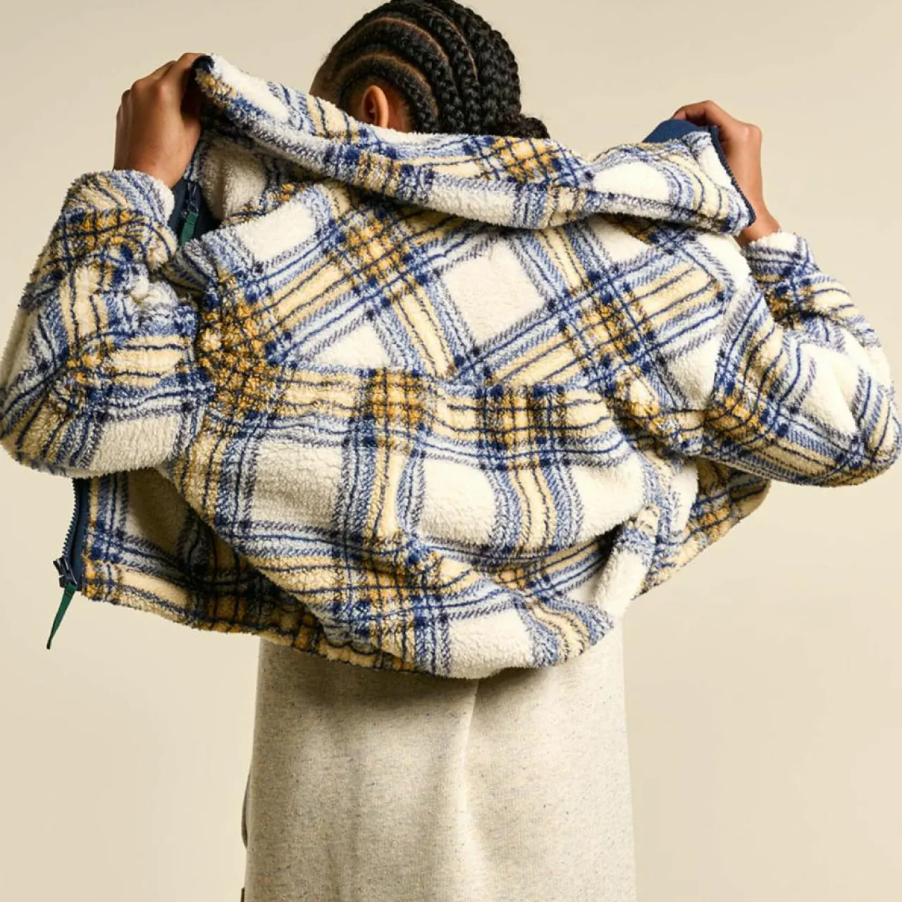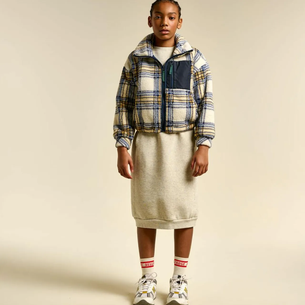 Elle se démarque par une coupe boxy oversize avec un zip contrasté, un col montant doublé qui fait toute la différence et quelques poches bien placées, dont une zippée sur la poitrine qui est super pratique pour ranger sa carte de transport, ses clés, ses écouteurs… Et ces carreaux hyper tendance, on en parle ?