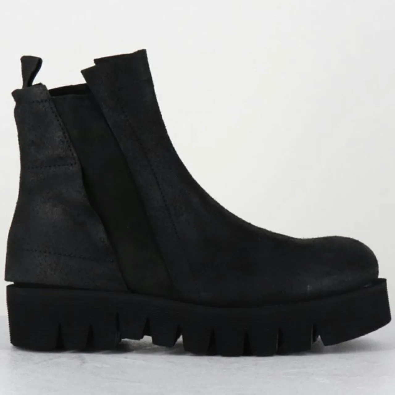 Boots courtes en cuir nubuck huilé et brossé pour un effet vieilli