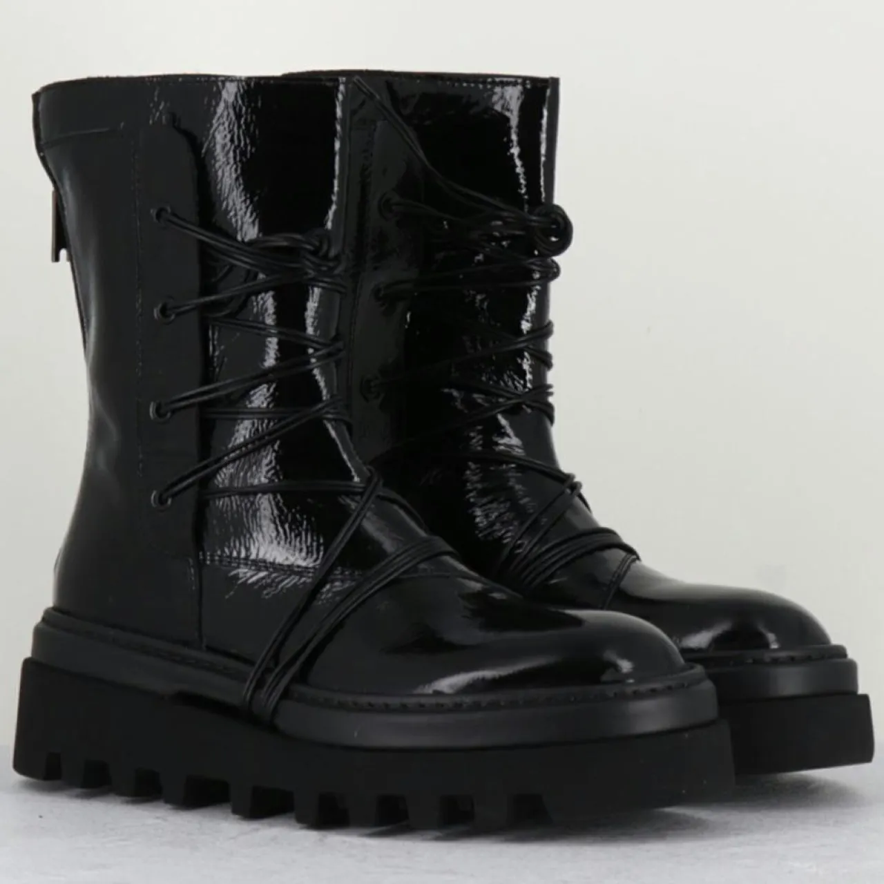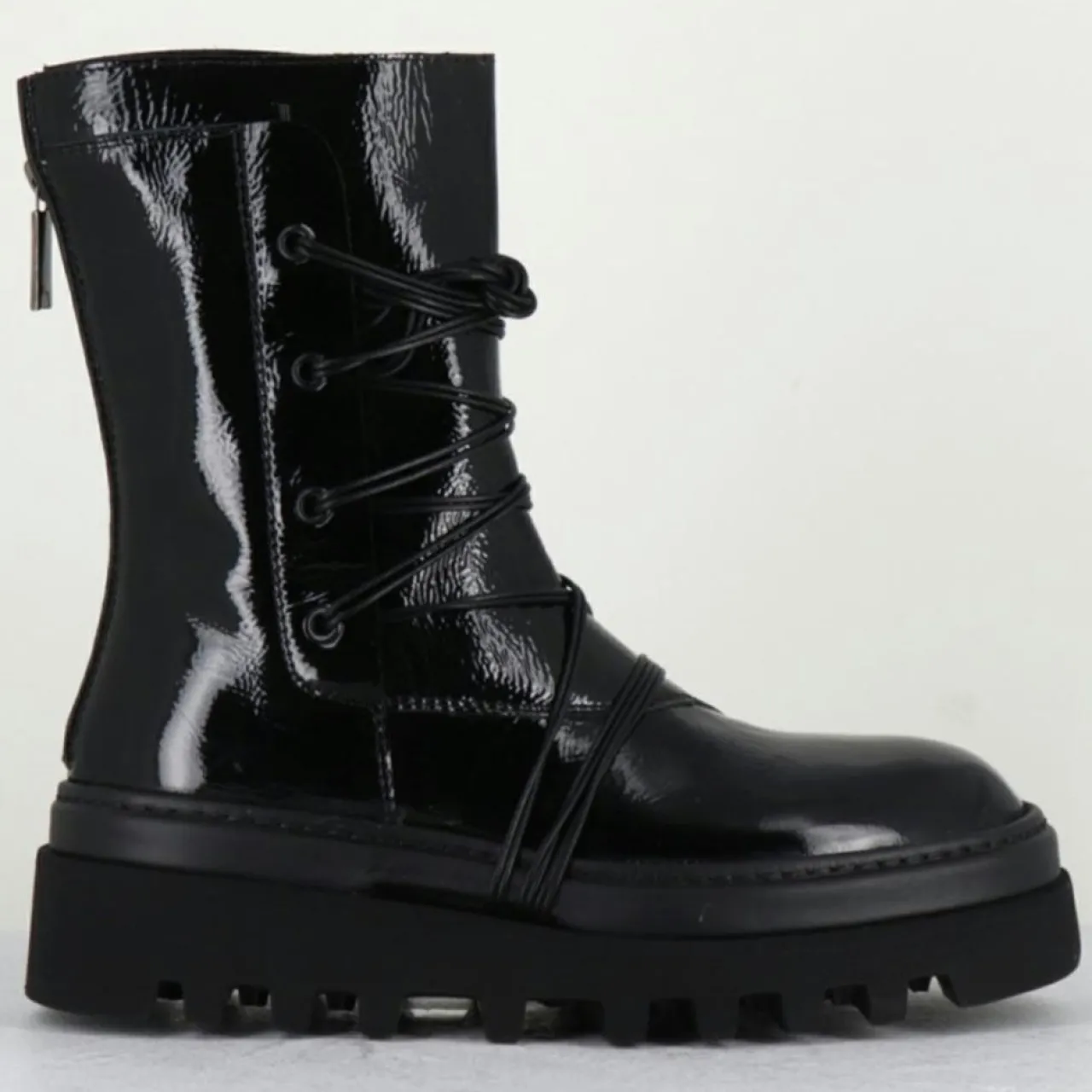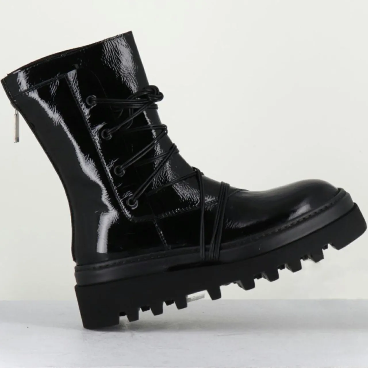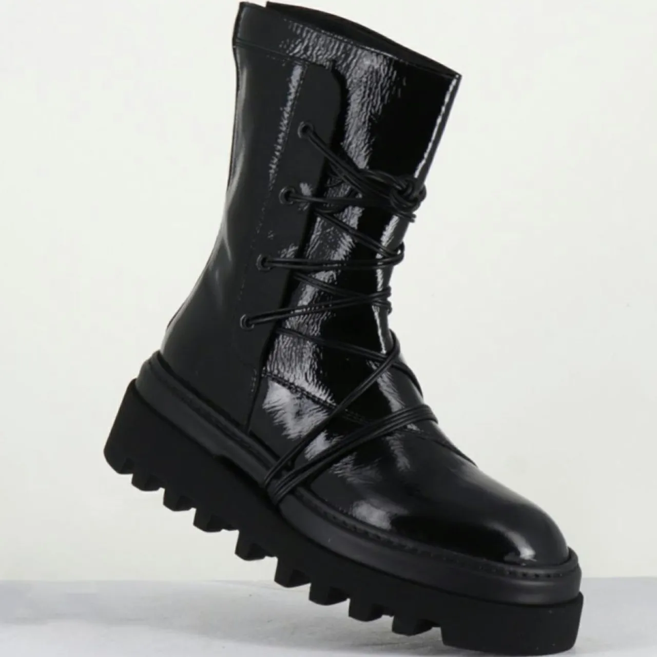 Boots tige mi-haute en cuir effet vinyle noir et laçage sur le devant