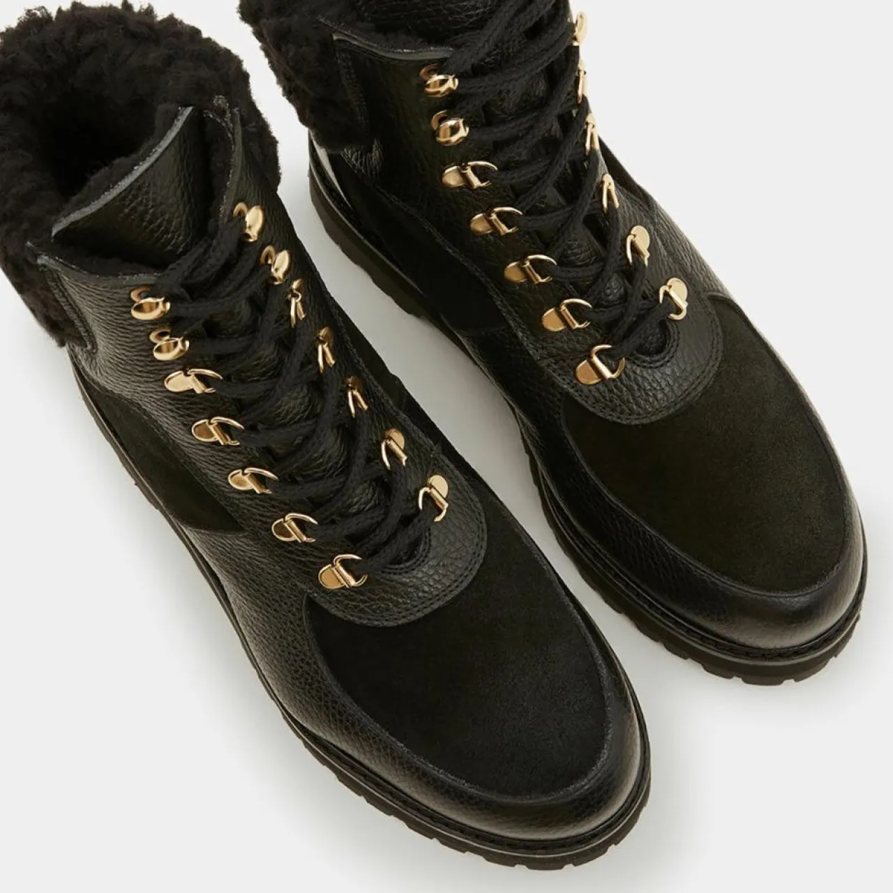 Elles proposent un bout arrondi, un laçage 5 oeillets et 2 crochets, un col arrière en sherpa et une plateforme crantée