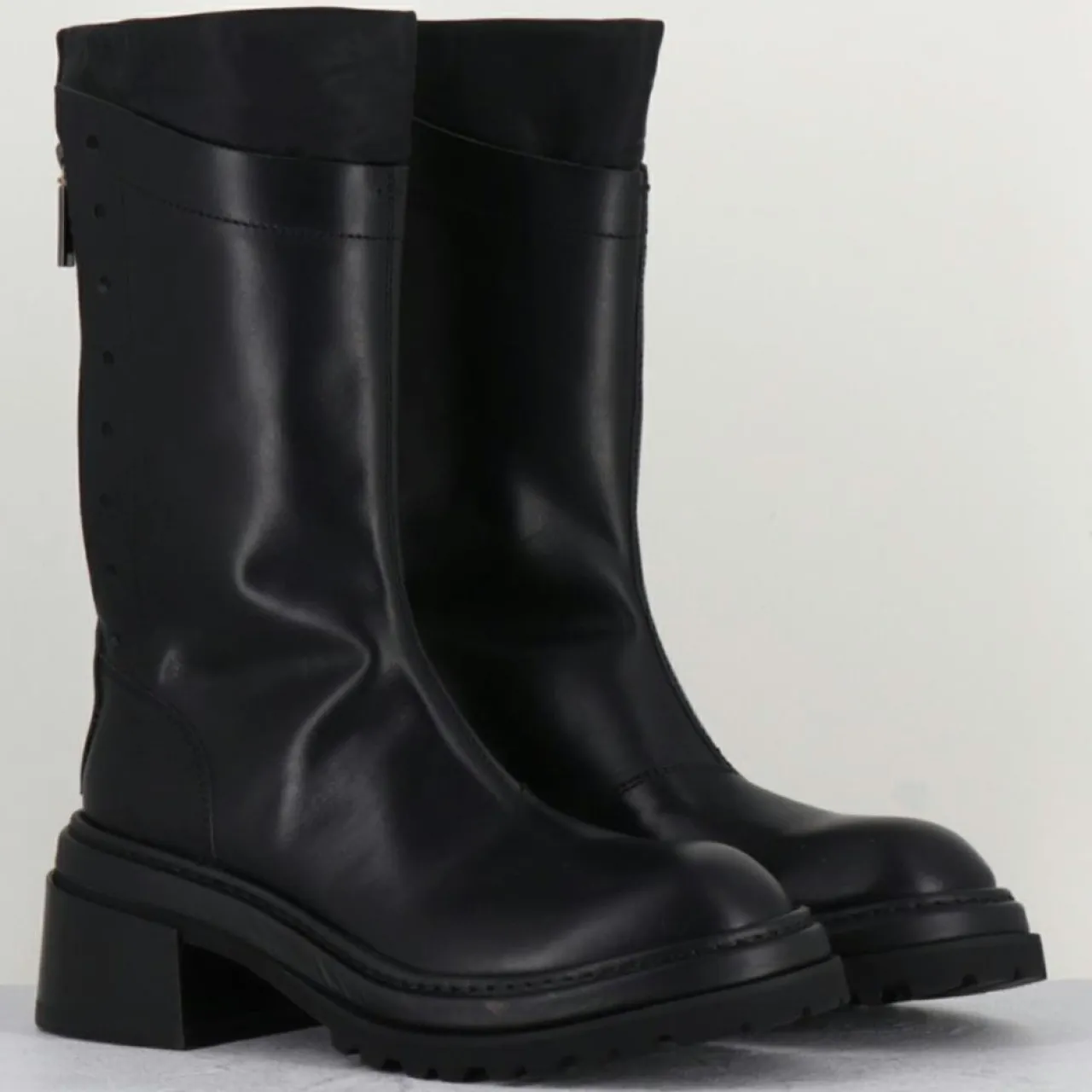 Montées sur une semelle épaisse en gomme et un talon bloc en cuir.