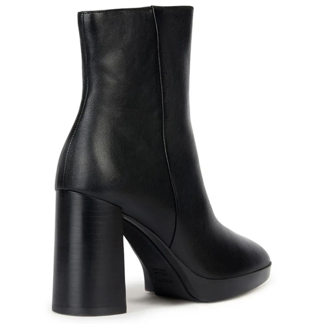 Ces bottines à talon Geox en cuir lisse présentent un bout arrondi légèrement carré, une fermeture latérale zippée ainsi qu’un talon bloc.