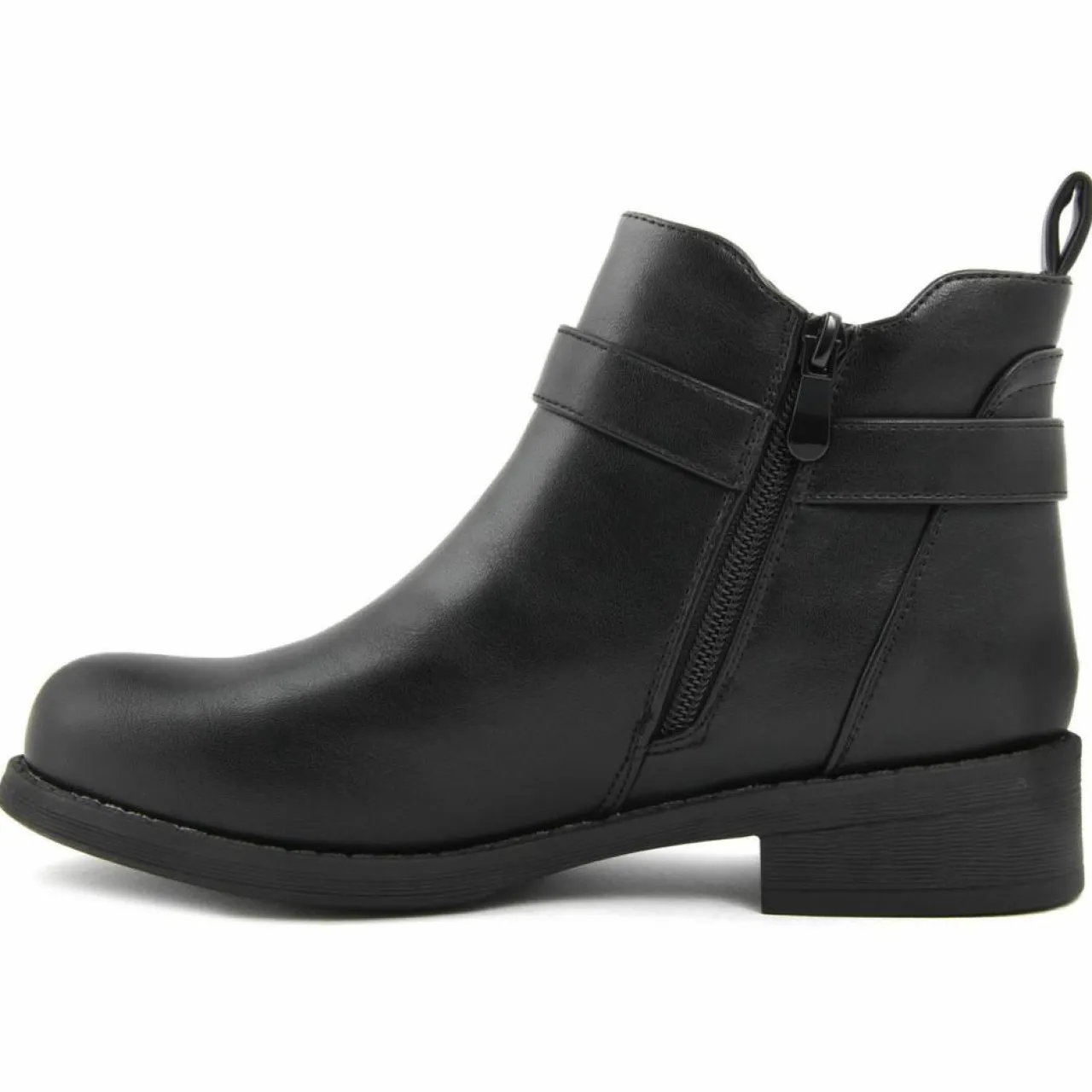 Bottine Détails Côtés Talon Rectangulaire Bout Rond Fermeture Zip Intérieure