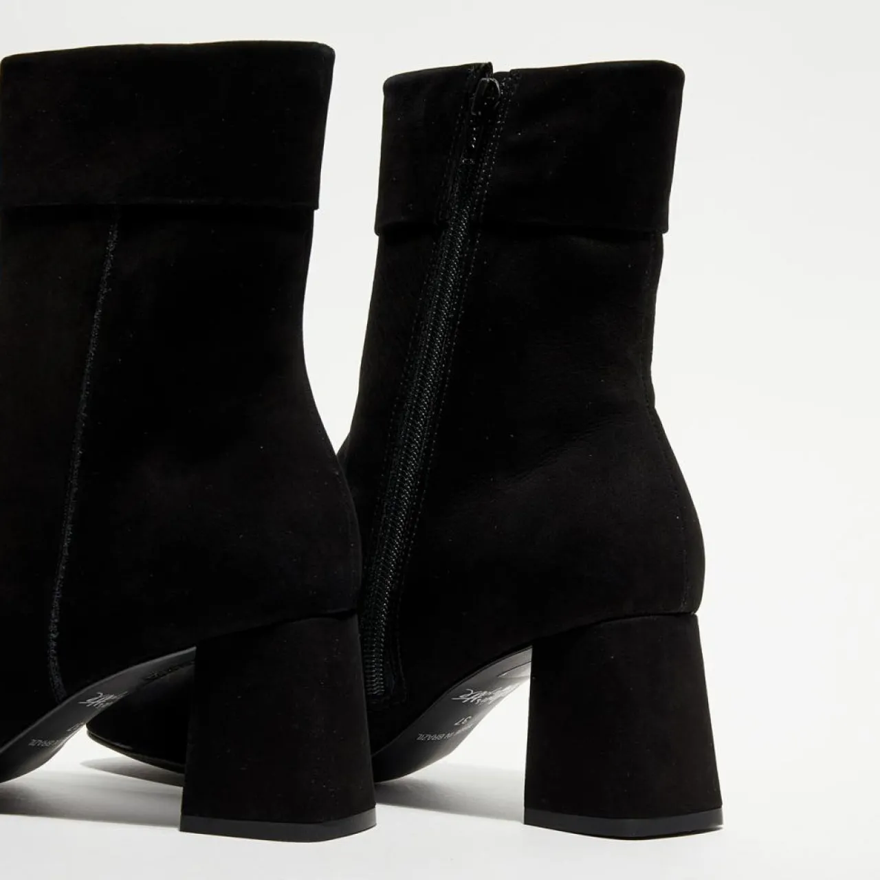 Elles présentent un bout arrondi, une fermeture zippée, un détail boucle sur le côté, un tirant d’enfilage sur l’arrière et un talon large.