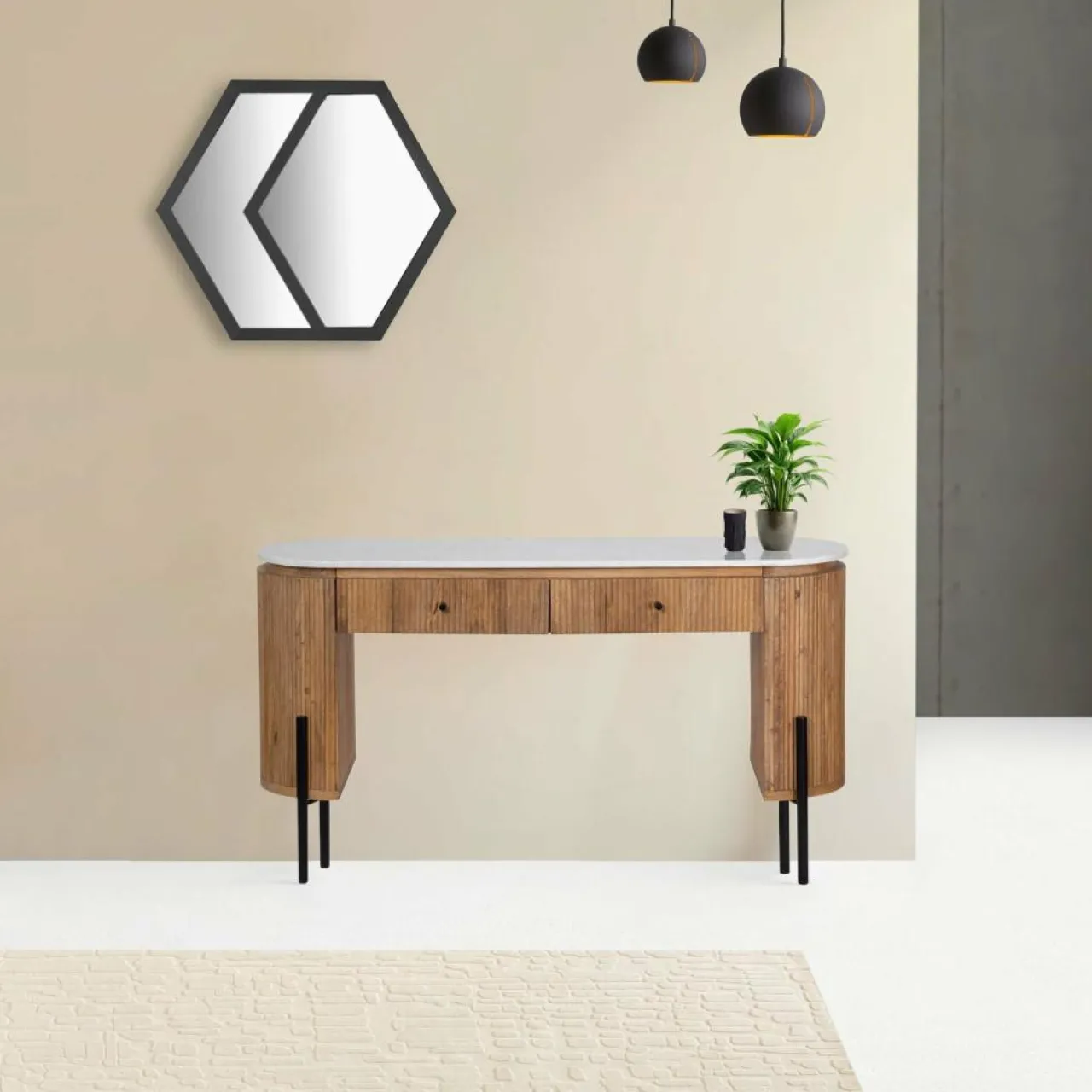 Doté de deux tiroirs spacieux, ce bureau offre un espace de rangement pratique pour vos fournitures de bureau, documents et autres essentiels. Les tiroirs permettent de garder vos objets personnels organisés et hors de vue, tout en ajoutant une fonctionnalité discrète à votre espace de travail. Le design épuré et moderne de ce bureau s’harmonise parfaitement avec une variété de styles de décoration intérieure.