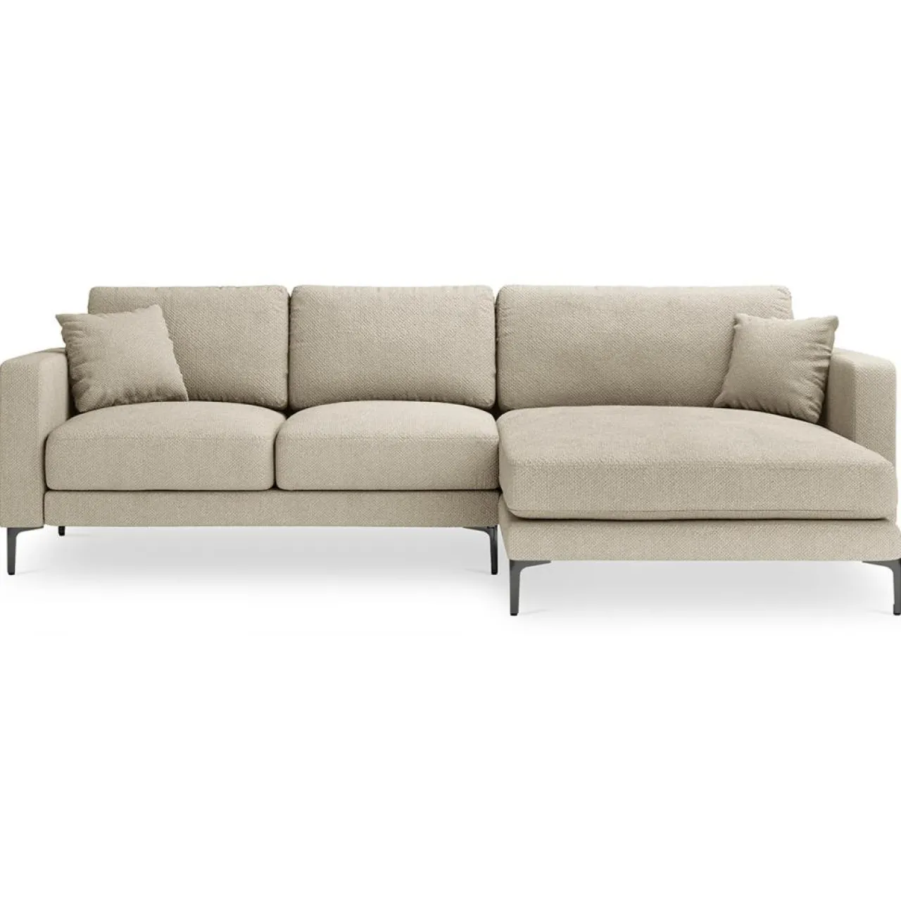 Tissu structuré avec un effet clairement visible de fils entrelacés. Tressé à partir de fibres synthétiques. Il imite le tissu de lin. (Test Martindale 25 000, 380 g / m²). Le tissu a réussi le test de la cigarette, ce qui signifie que le système de rembourrage est résistant à la combustion lente et à l’inflammation des flammes et est conforme à la norme PN-EN 1021-1 : 2014-12.