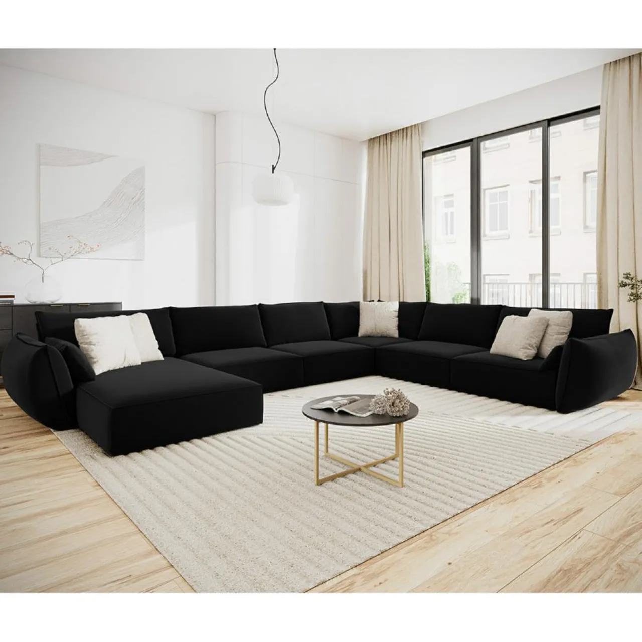 Canapé d’angle Panoramique droit Velours Vanda 8 Places
