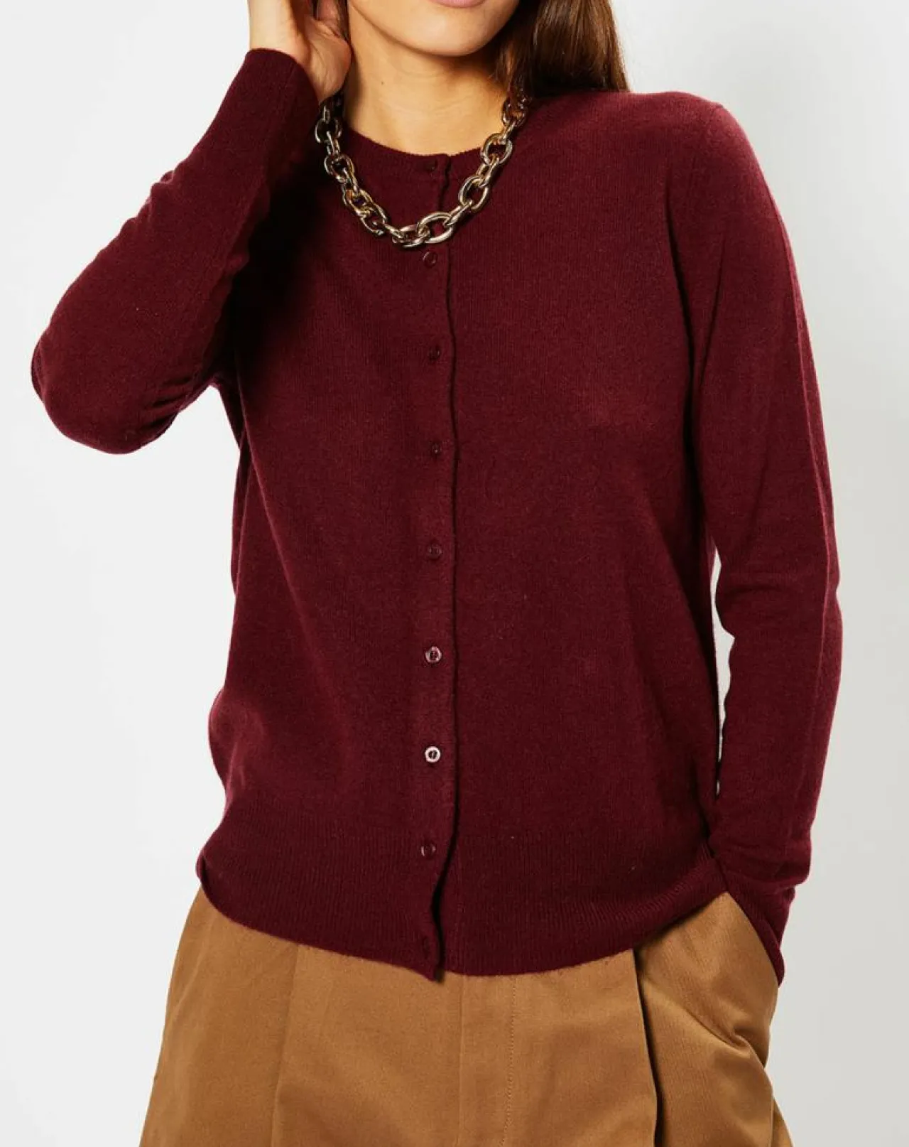 Ce gilet droit Galeries Lafayette en cachemire se pare d’un col rond, de manches longues, d’une fermeture boutonnée et de finitions côtelées.