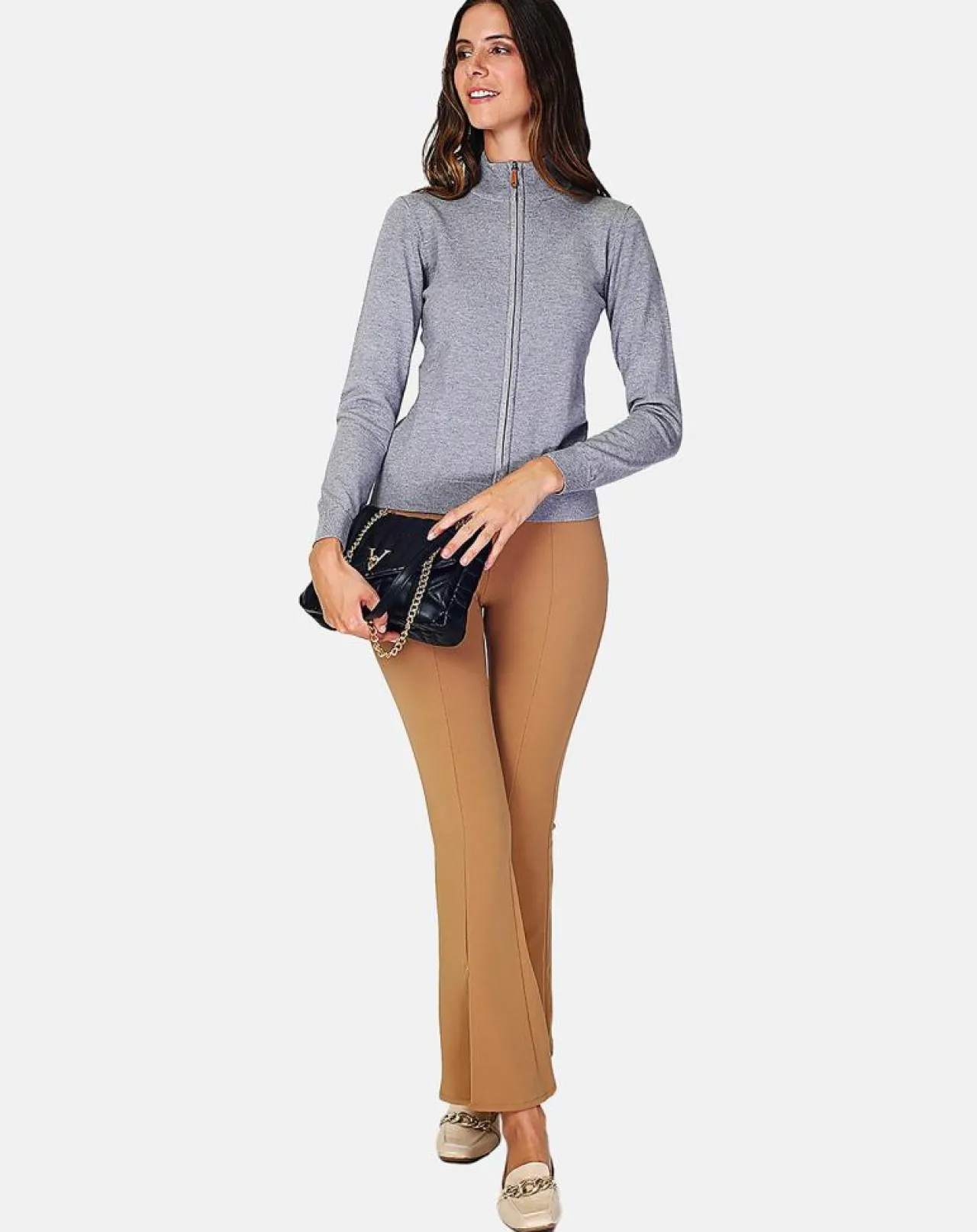 Gilet zippé classique tricotage en 3 fils à manches longues