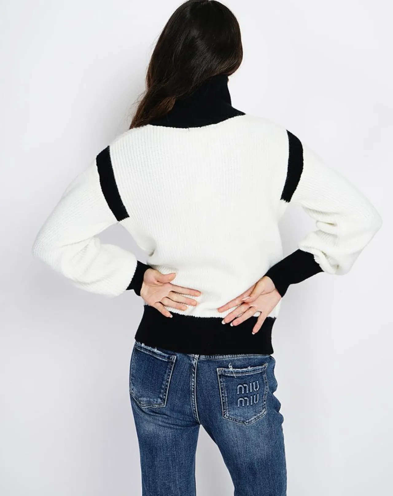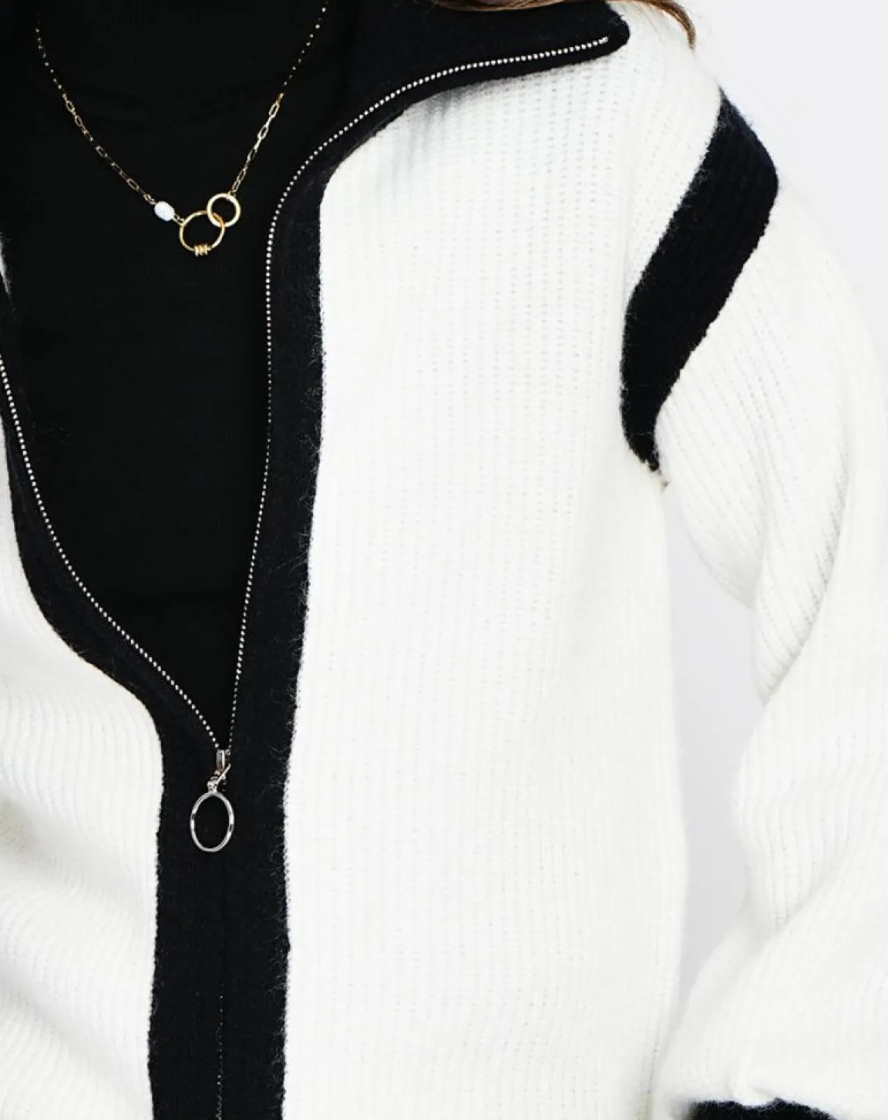 Gilet zippé bi-couleur en cotes à manches longues