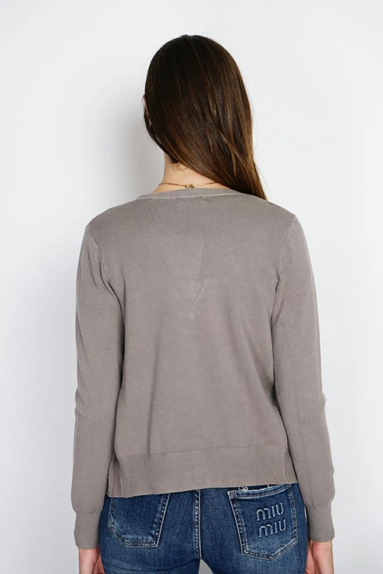 Cardigan col V classique tricotage en 3 fils à manches longues