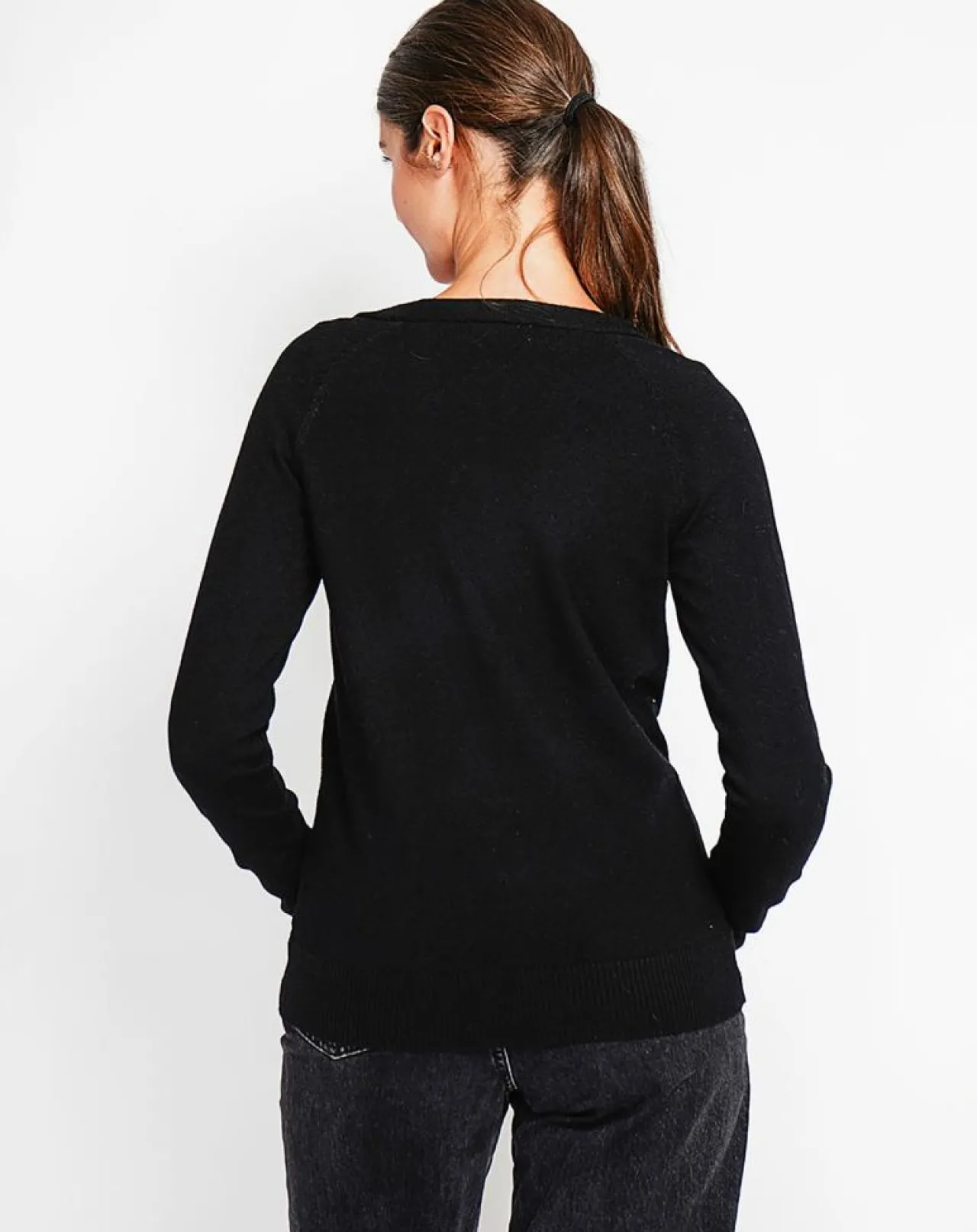 Gilet col v boutonné fantaisie coupe oversize avec poches à manches longues