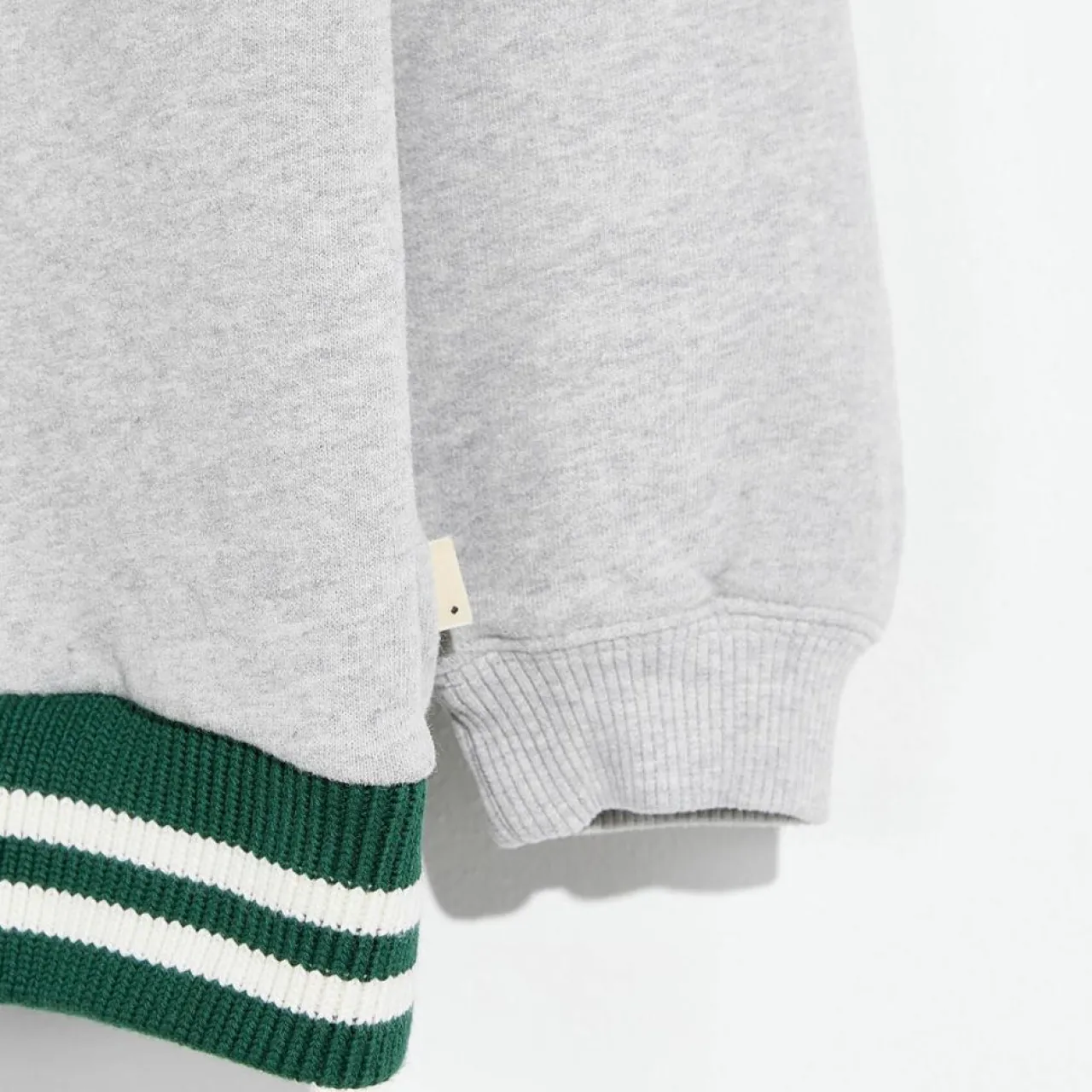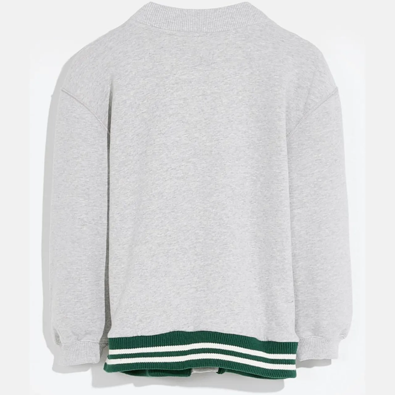 Confectionné façon sweatshirt en jersey de pur coton brossé, il présente une coupe décontractée avec un col en V, des épaules tombantes, un appliqué S sur la poitrine et des bords-côtes contrastés