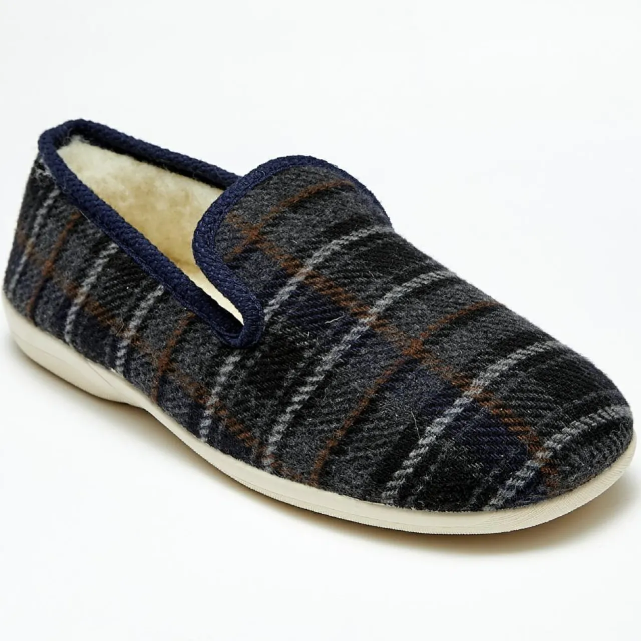 Chaussons charentais fourrés en Laine tartan bleu bord bleus