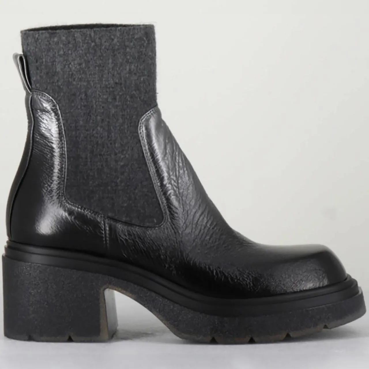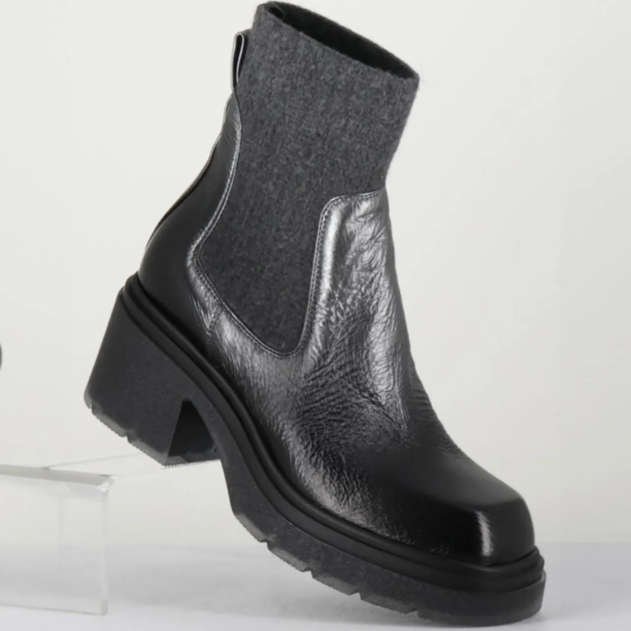 Bikers en cuir argent brossé noir à élastiques gris chiné, bout carré, montées sur une semelle épaisse cranté qui vous assurera adhérence et confort.