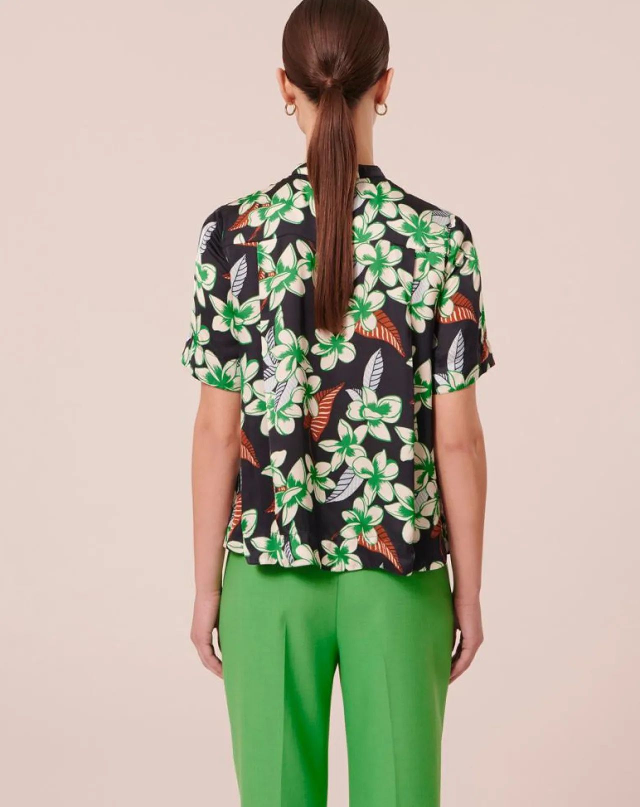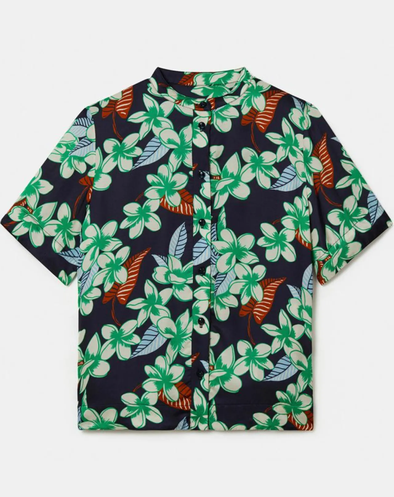 Chemise bleu nuit à motif fleurs