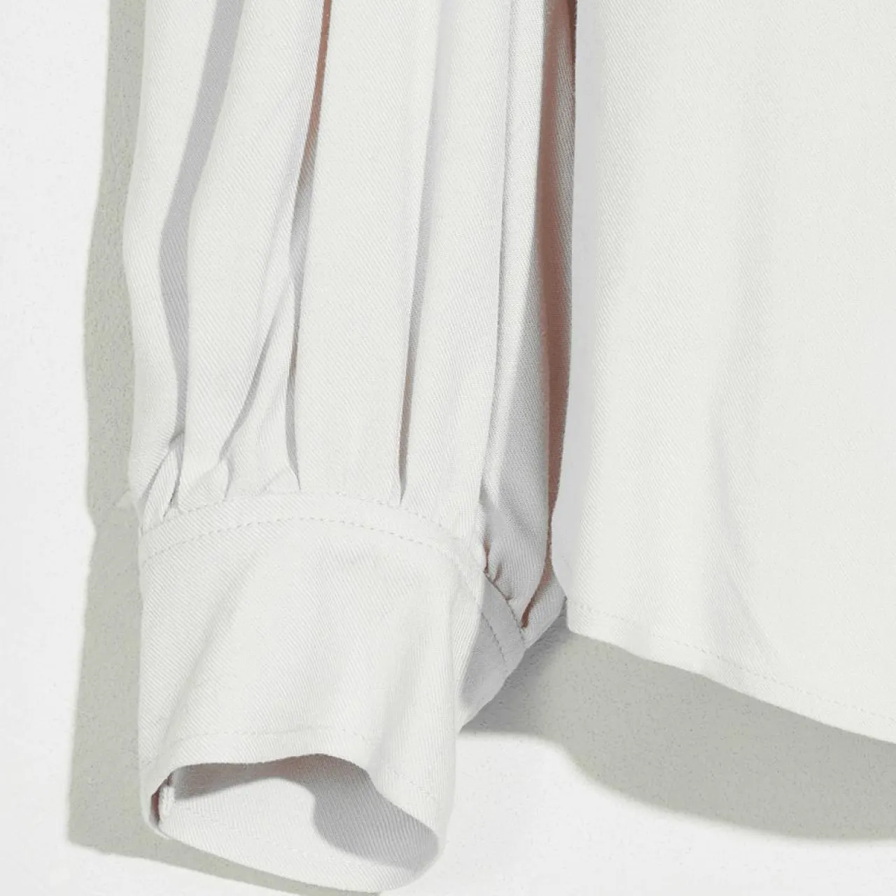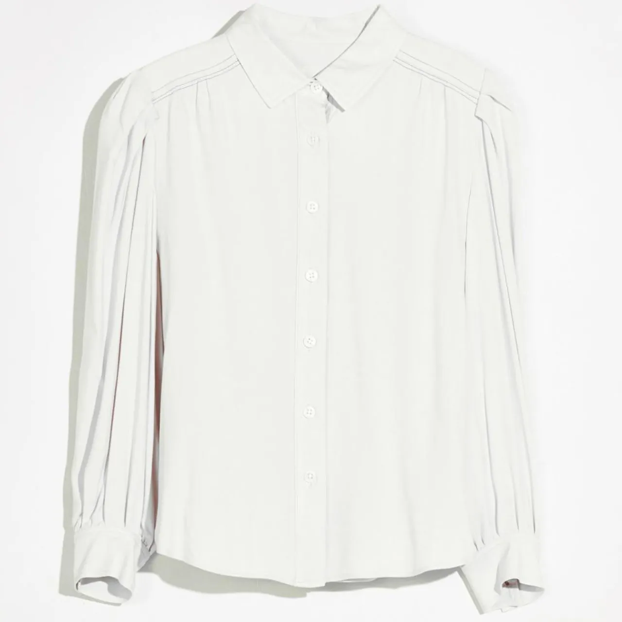 Notre AVATAR présente une coupe décontractée, quelques plis discrets aux épaules et des manches volumineuses resserrées aux poignets