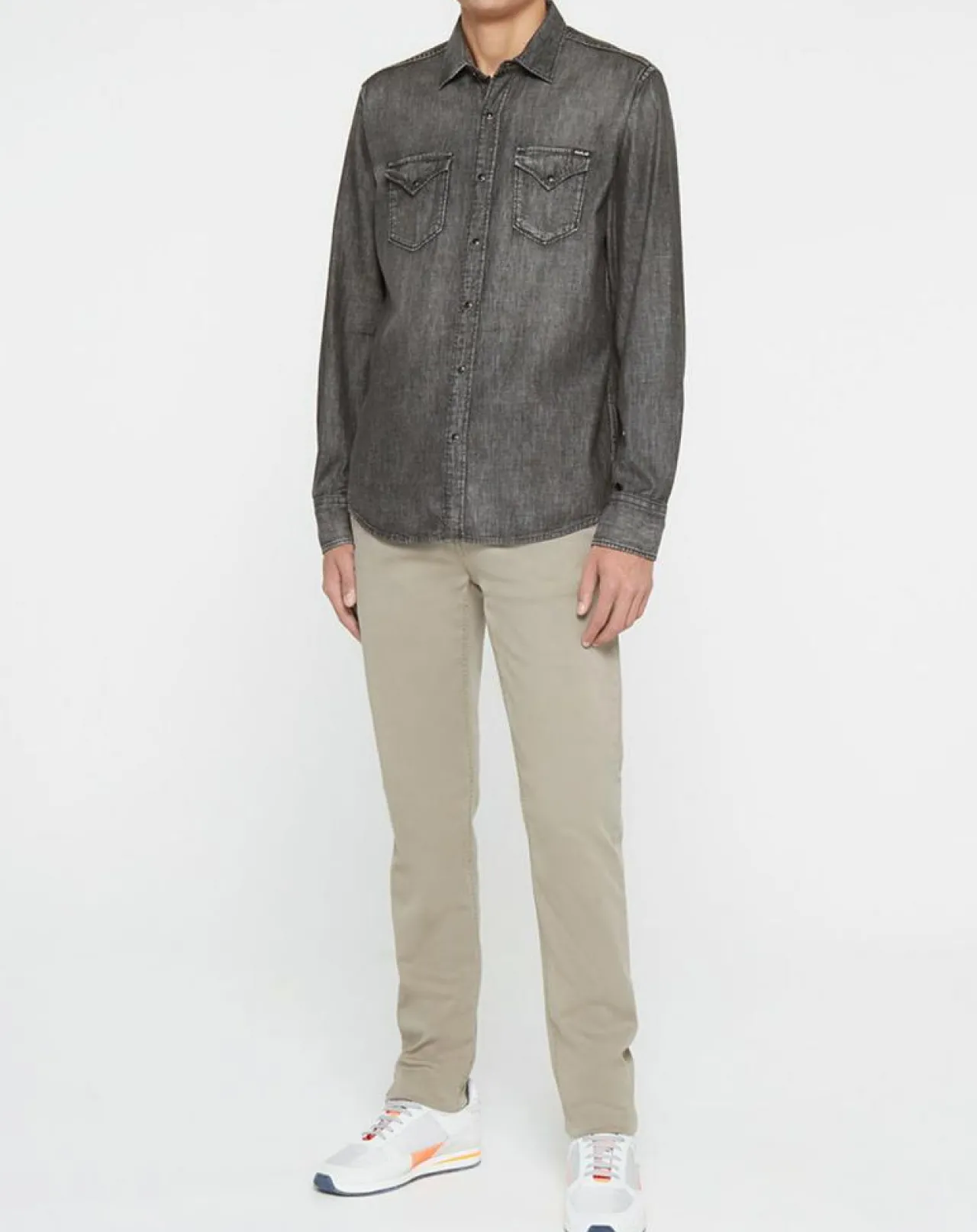 Cette chemise ajustée Replay est composée de coton et de chanvre façon denim