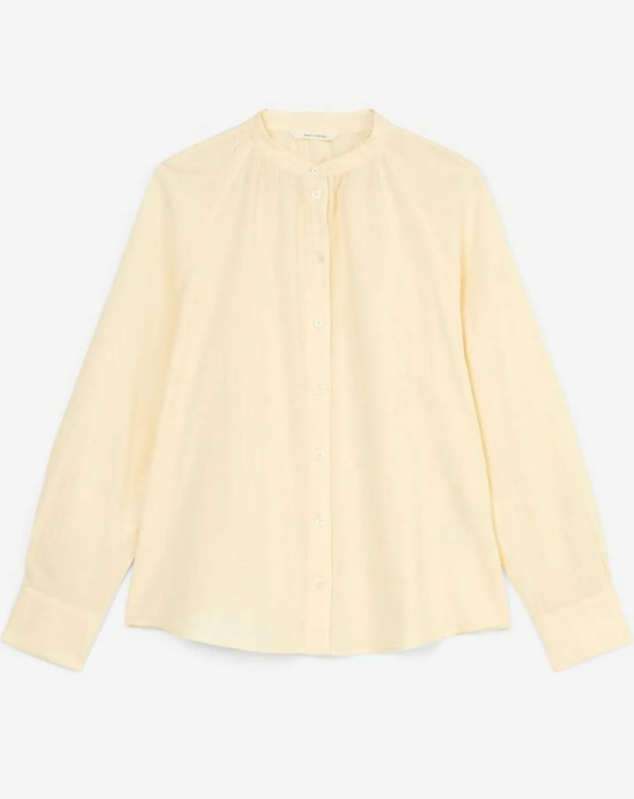 Féminin, robuste et doté d’une légère touche folklorique : le chemisier à col droit en pur coton biologique.
