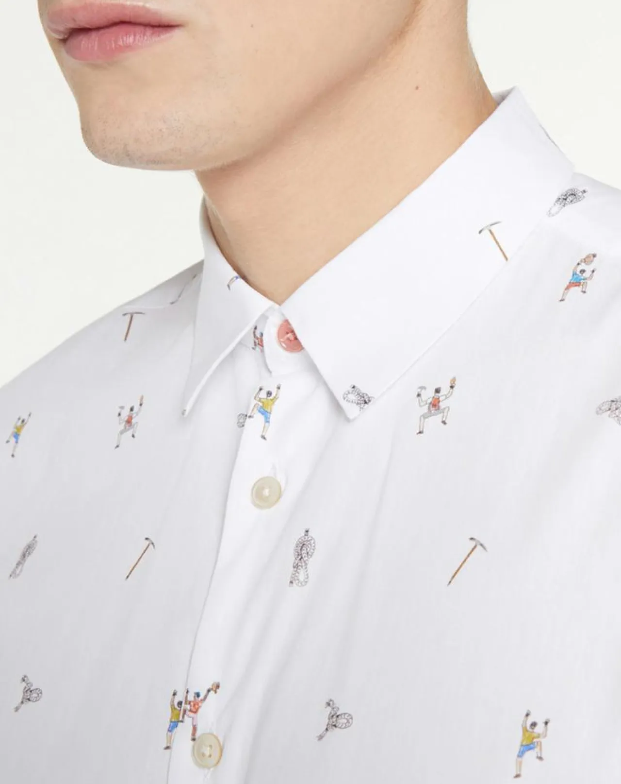 Cette chemise ajustée PS Paul Smith en coton à imprimé personnages, se pare d’un col classique, de manches longues, de poignets carrés à 1 bouton, d’une fermeture boutonnée et d’une base arrondie
