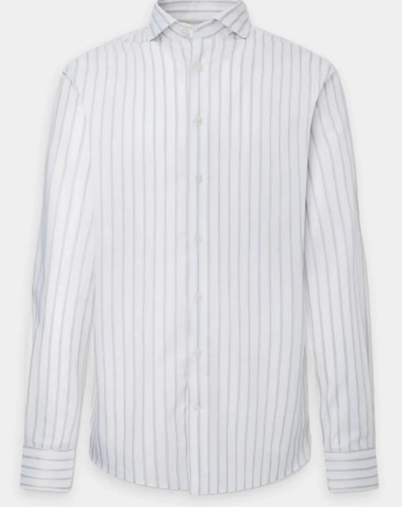 Cette chemise ajustée Hackett London en coton à rayures, se pare d’un col italien, de manches longues, de poignets ronds à 1 bouton ajustable, d’une fermeture boutonnée et d’une base arrondie.