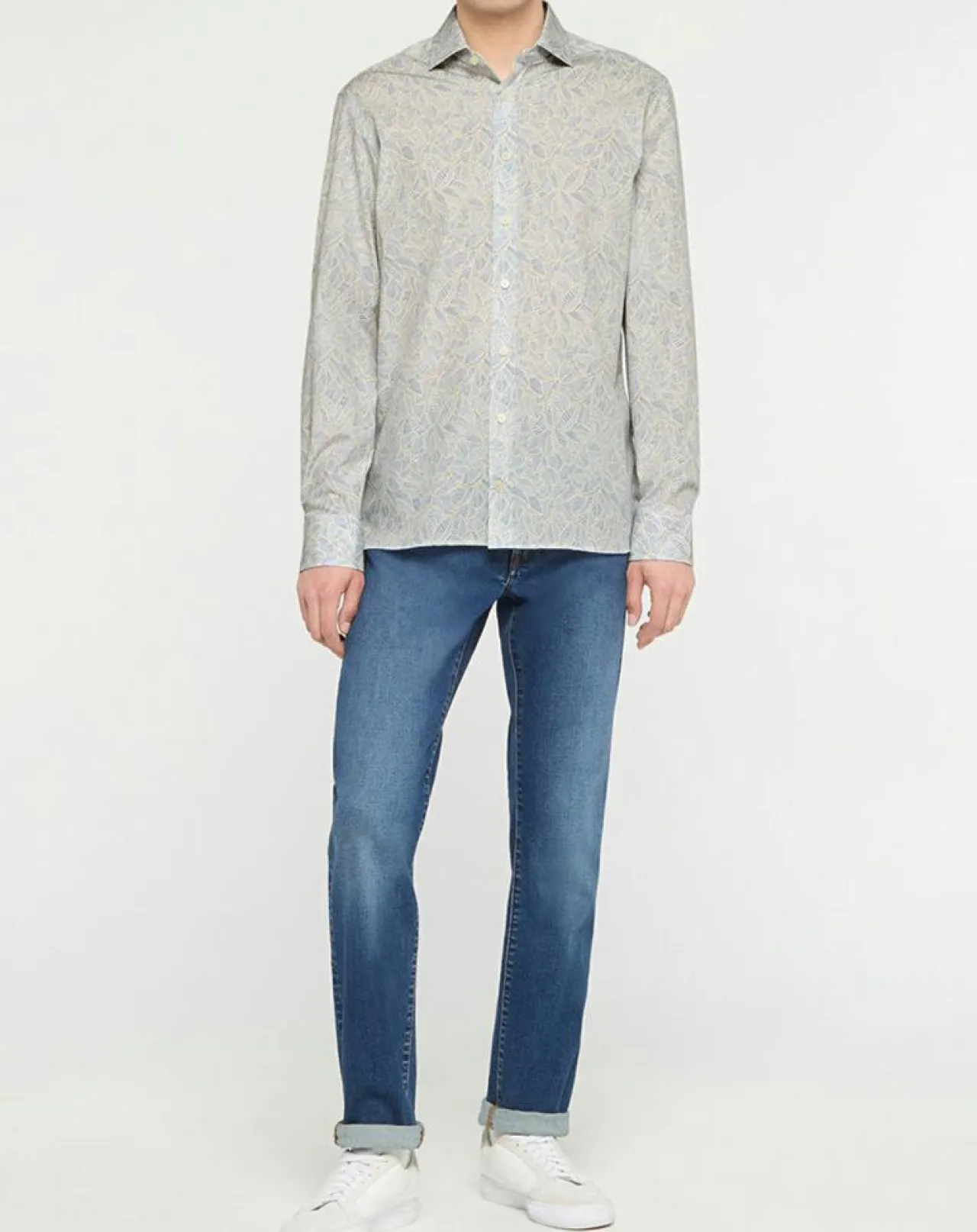 Cette chemise ajustée Hackett London en coton est munie d’un imprimé feuillages, d’un col italien, d’une fermeture boutonnée et d’une base et de poignets arrondis.