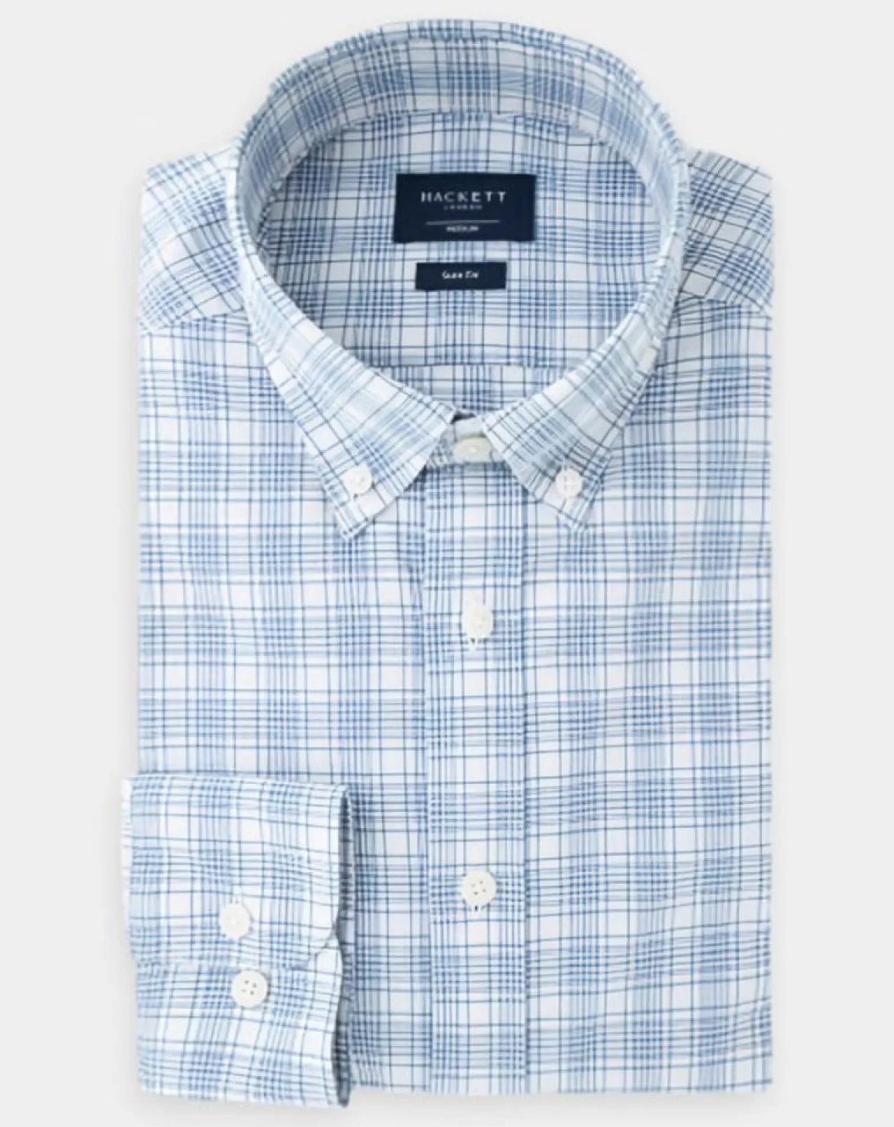 Cette chemise ajustée Hackett London en coton oxford à carreaux, se pare d’un col américain, de manches longues, de poignets ronds à 1 bouton ajustable, d’une fermeture boutonnée et d’une base arrondie.