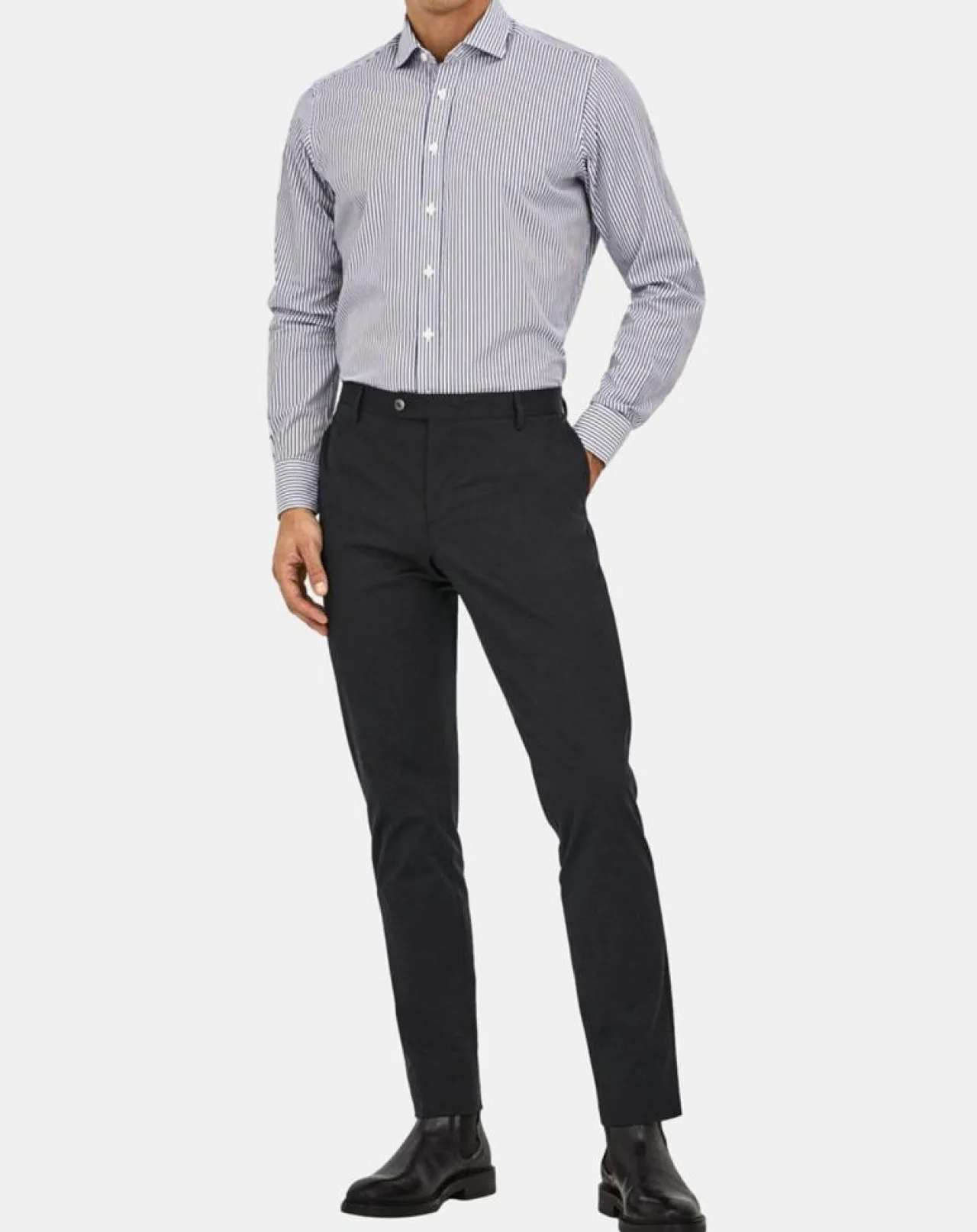 Cette chemise ajustée Hackett London en popeline de coton à rayures, se pare d’un col italien, de manches longues, de poignets ronds à 1 bouton ajustable et d’une fermeture boutonnée
