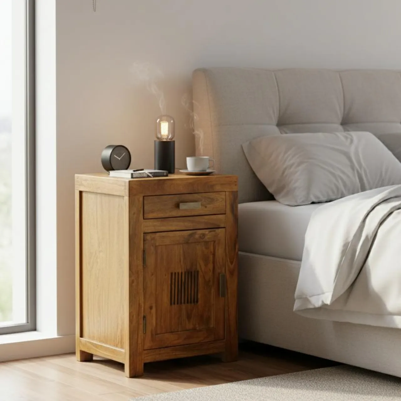 Confiée à des artisans indiens fidèles aux traditions ancestrales, sa manufacture offre un montage et des finitions authentiques que vous appréciez au quotidien. On craque pour ses motifs striés, influencés par les différentes esthétiques. En outre, sa couleur chaude et naturelle lui permet toutes les associations. Particulièrement bien agencé, il propose un rangement confortable de vos livres, revues et affaires que l’on aime avoir près de soi tout au long de nos soirées et de nos nuits.