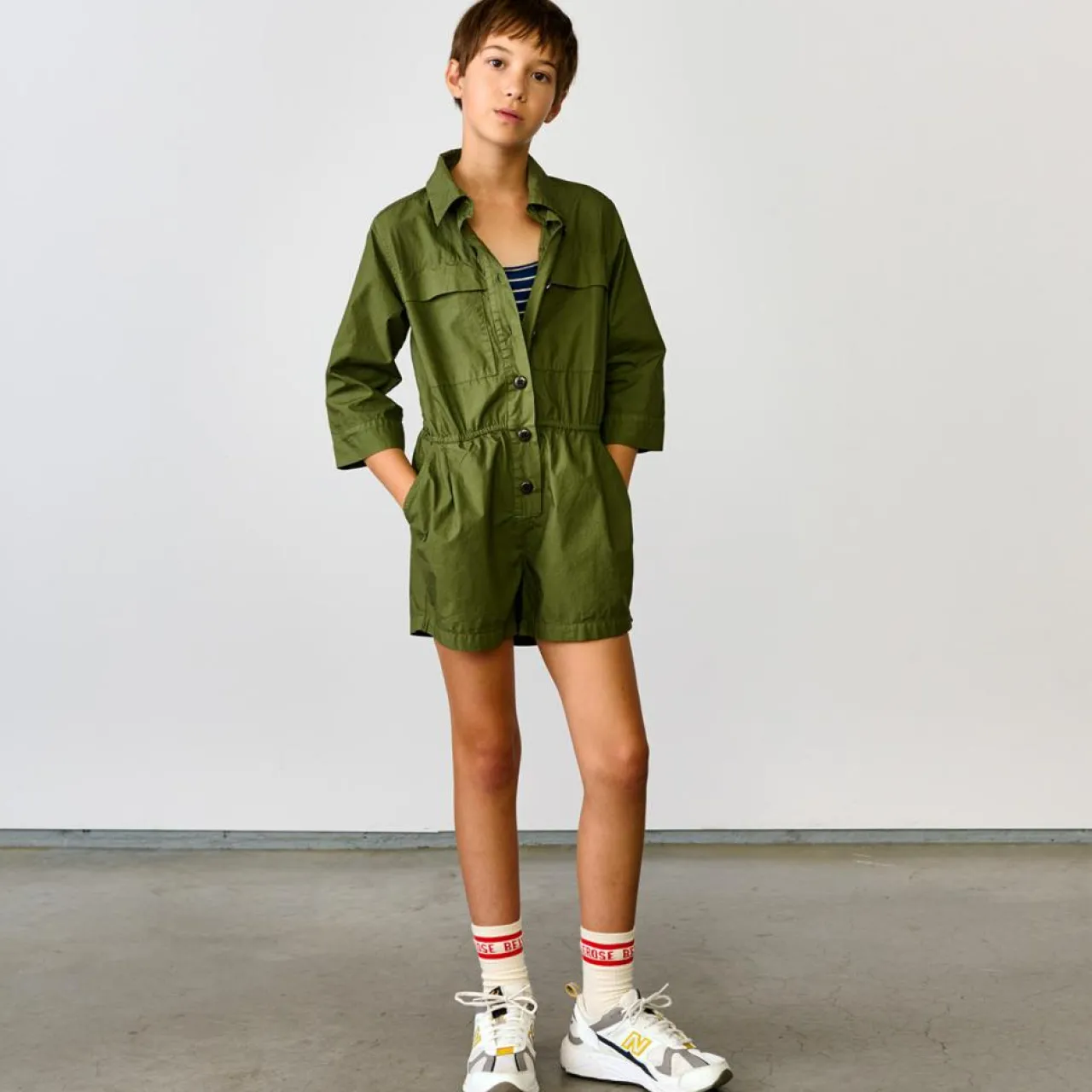 Confectionnée en coton au ton army, c’est la combi versatile par excellence
