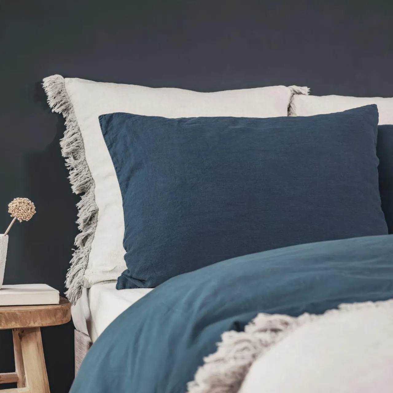 Le coussin XXL HUGFRANGE, coloris Orage, en 100 % lin lavé, apporte une touche de fraîcheur et de confort à votre literie. Avec ses dimensions de 80 x 80 cm, il garantit une sensation de douceur agréable pour vos nuits. Ses finitions frangées et la fermeture à boutons lui confèrent un charme subtil et raffiné. Facile d’entretien, sa housse est lavable en machine à 40°C.