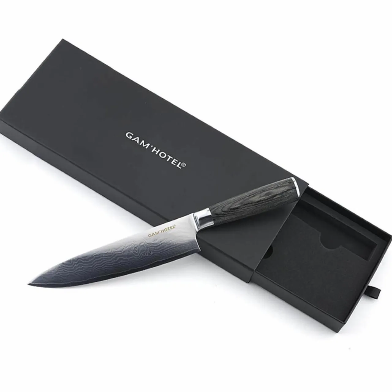Le manche en lamelles de bois Pakka sont compressées à chaud avec de la résine, ce qui permet d’être très résistant et hygiénique