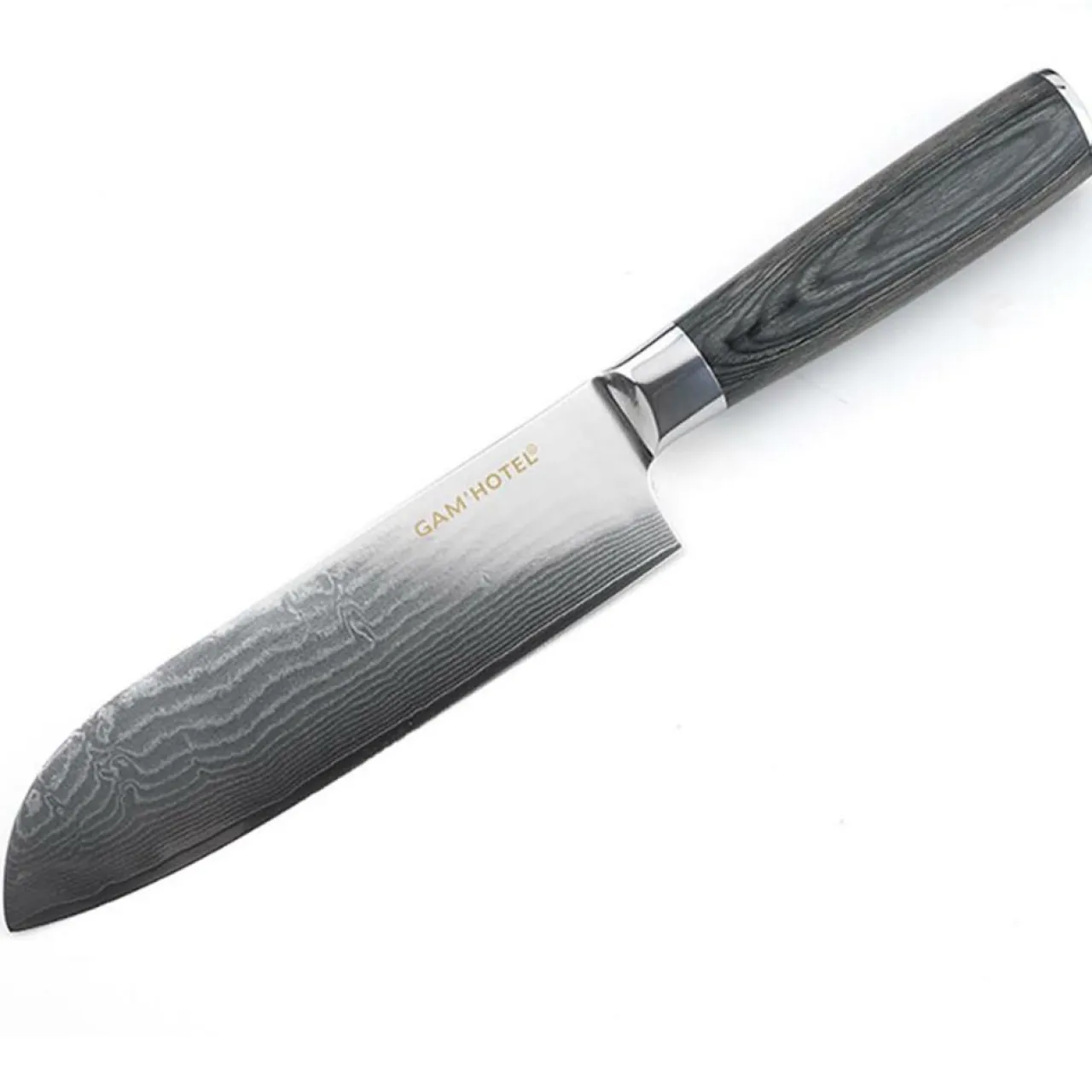 Le manche en lamelles de bois Pakka sont compressées à chaud avec de la résine, ce qui permet d’être très résistant et hygiénique