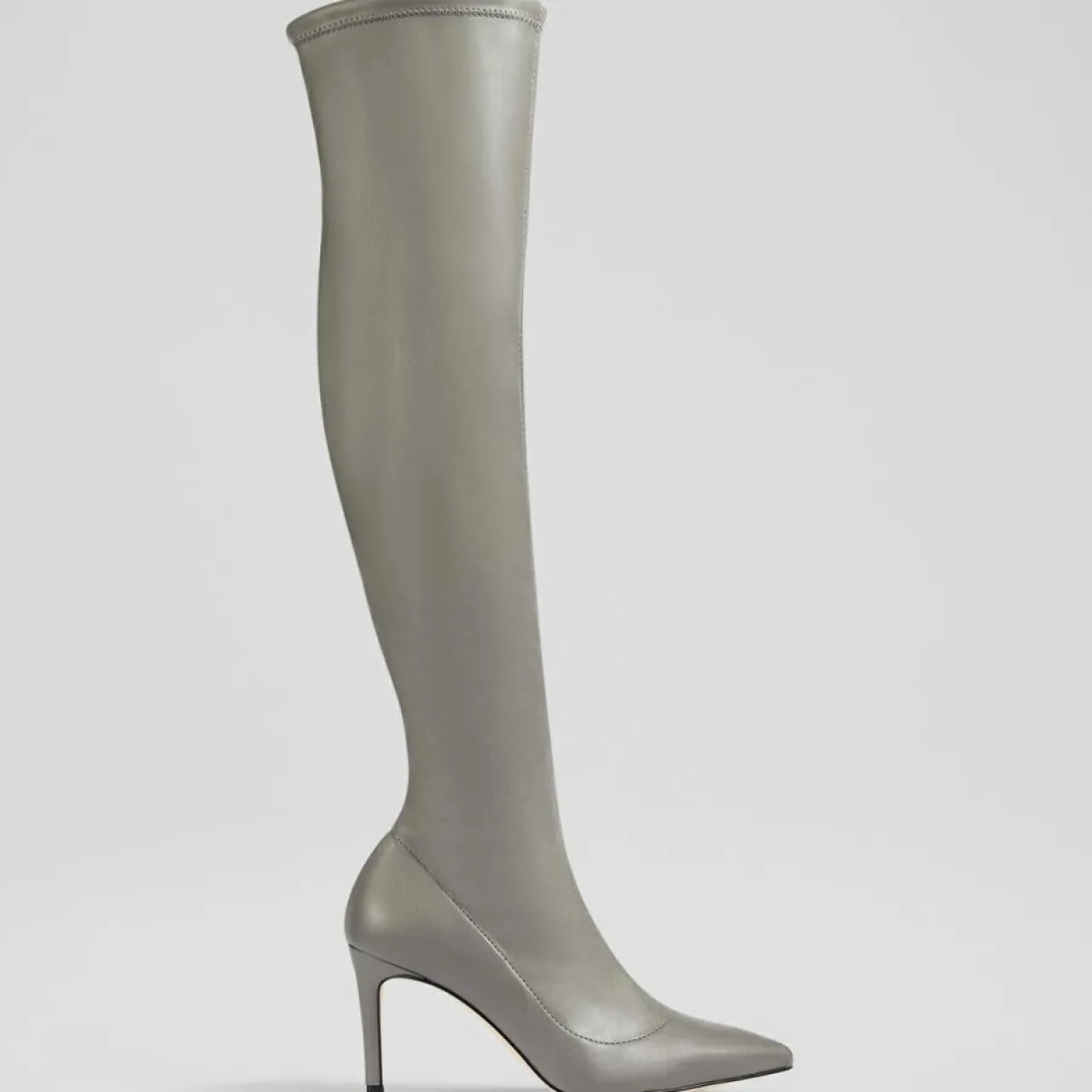 Les chaussures à enfiler ont un bout pointu, une forme au-dessus du genou et un talon aiguille de 85 mm
