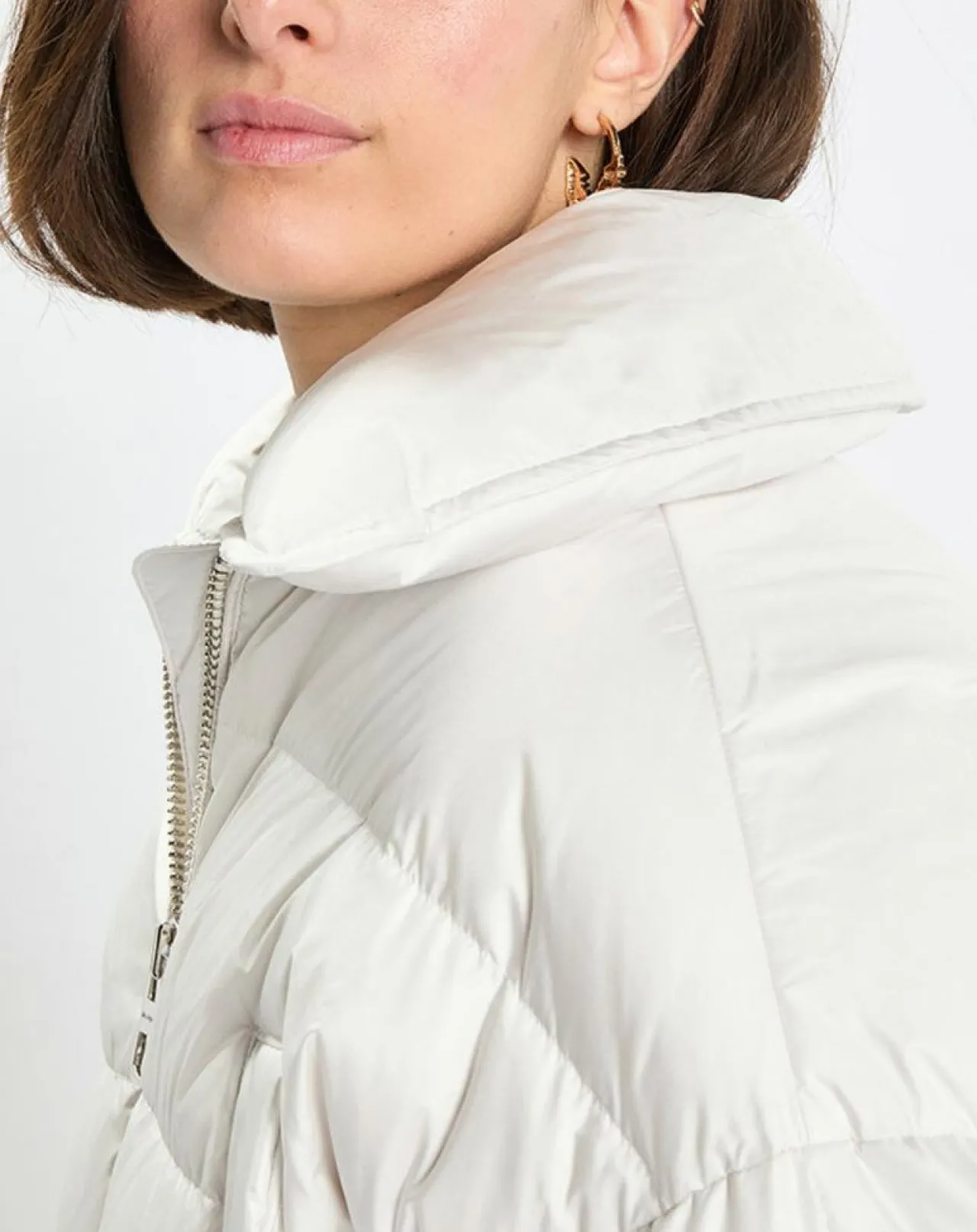 Inspirée du look des pistes de ski des années 80 : la doudoune bouffante oversize ultra-courte invite à la superposition et s’associe parfaitement aux jeans Skinny, aux leggings ou aux pantalons en maille sportifs.