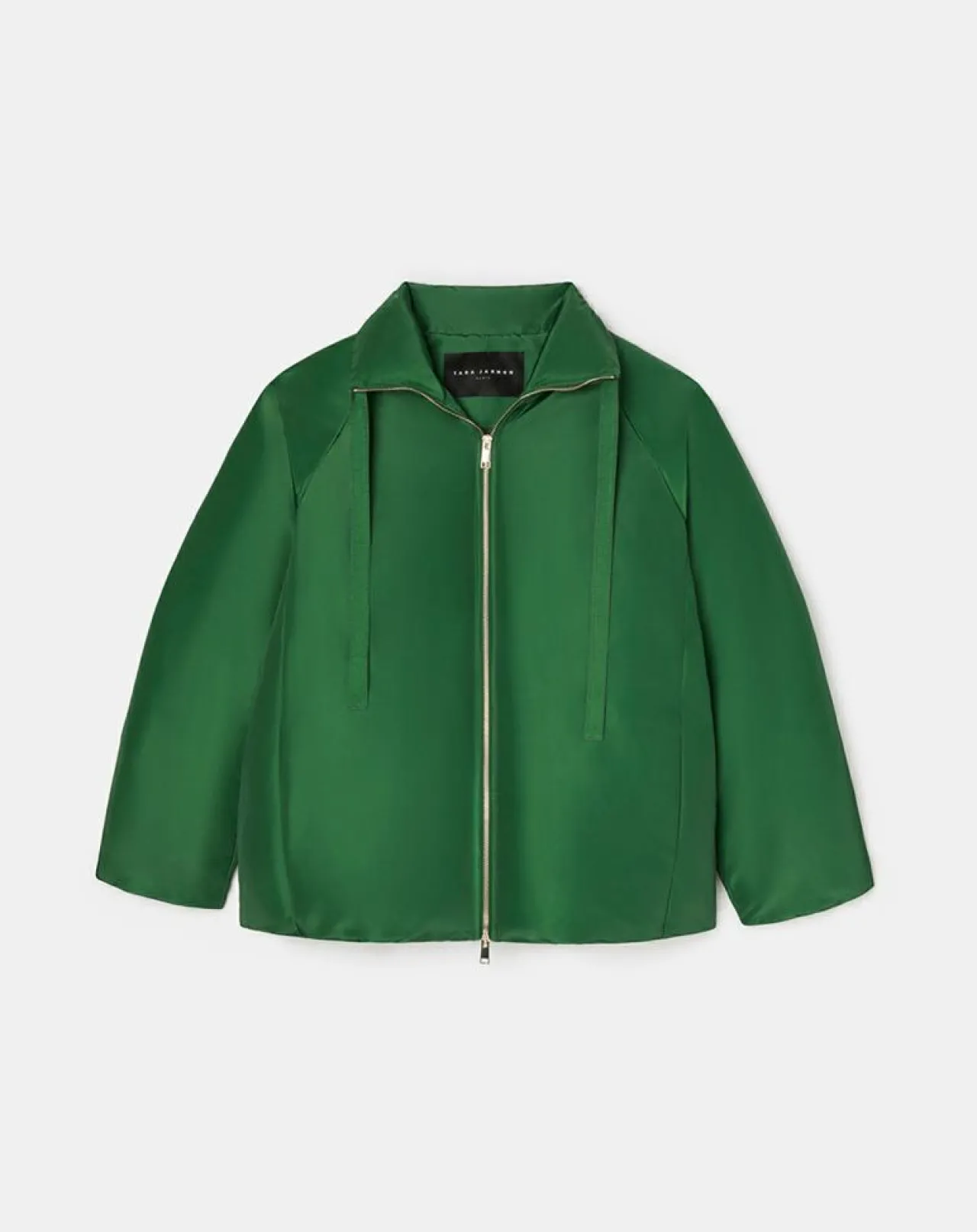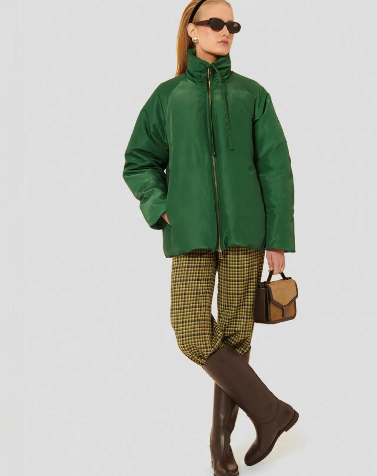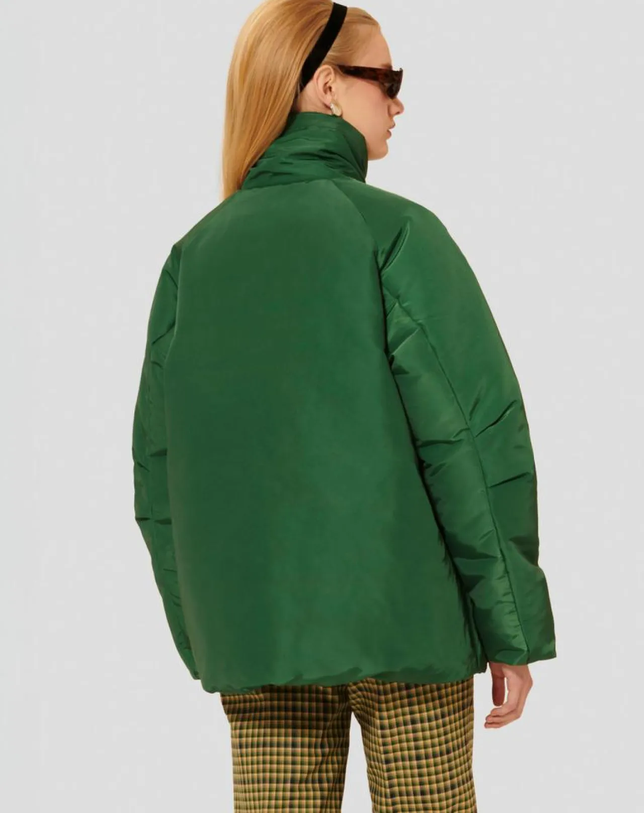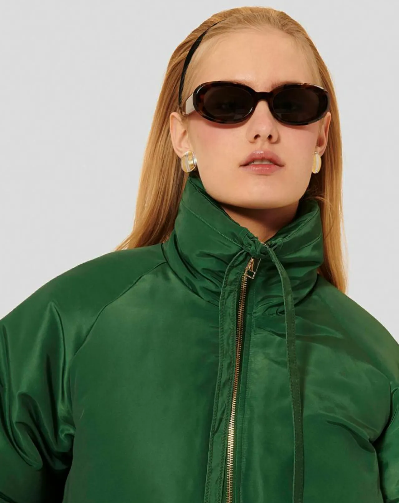 Cette doudoune matte de couleur verte possède des manches longues et deux grandes poches aux côtés