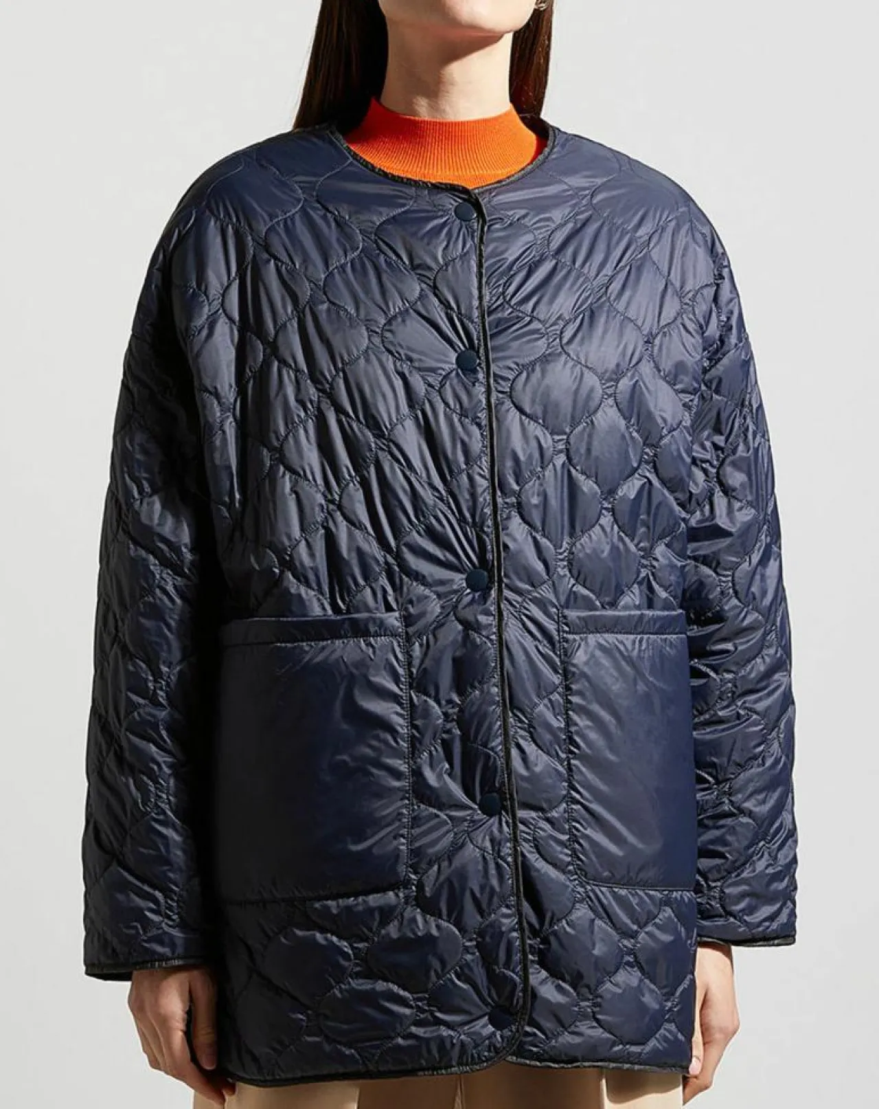 Cette doudoune réversible courte et légère Galeries Lafayette séduit par son tissu matelassé.