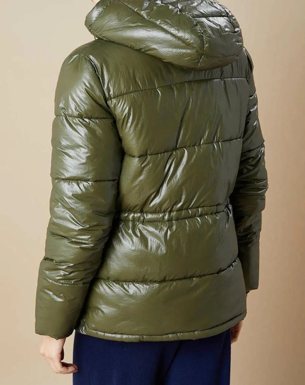 Courte et marquant la taille, elle est dotée d’une capuche, de surpiqûres, de boutons-pression et de cordons de serrage à l’ourlet