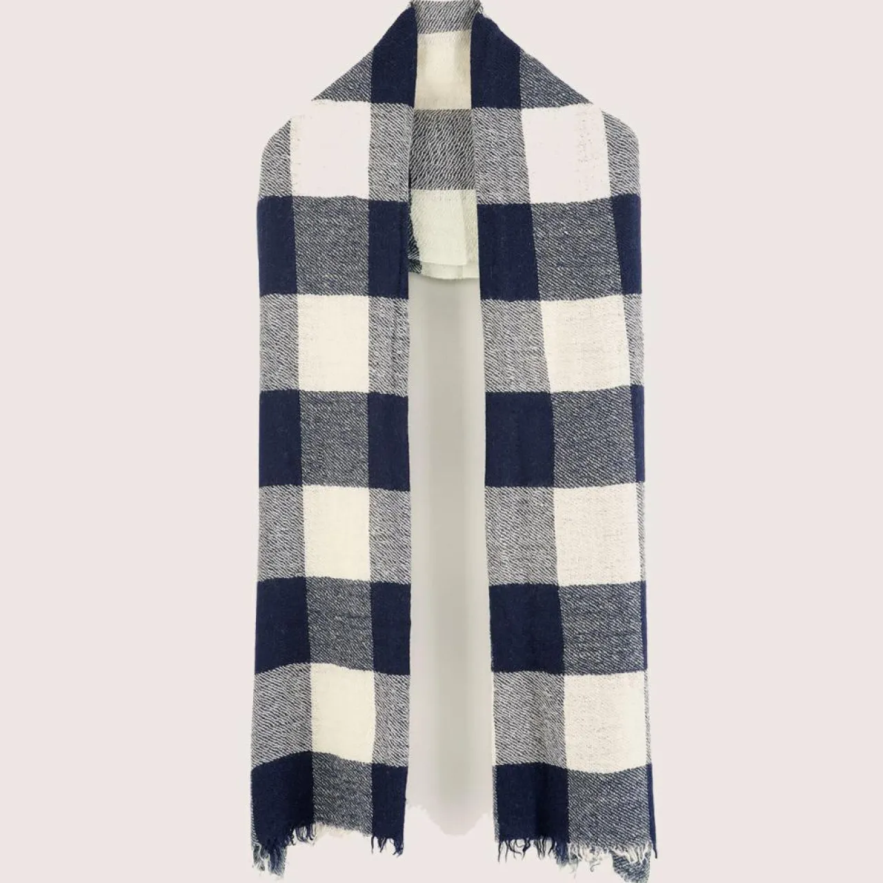 Écharpe tissée classique en laine à carreaux noirs et blancs