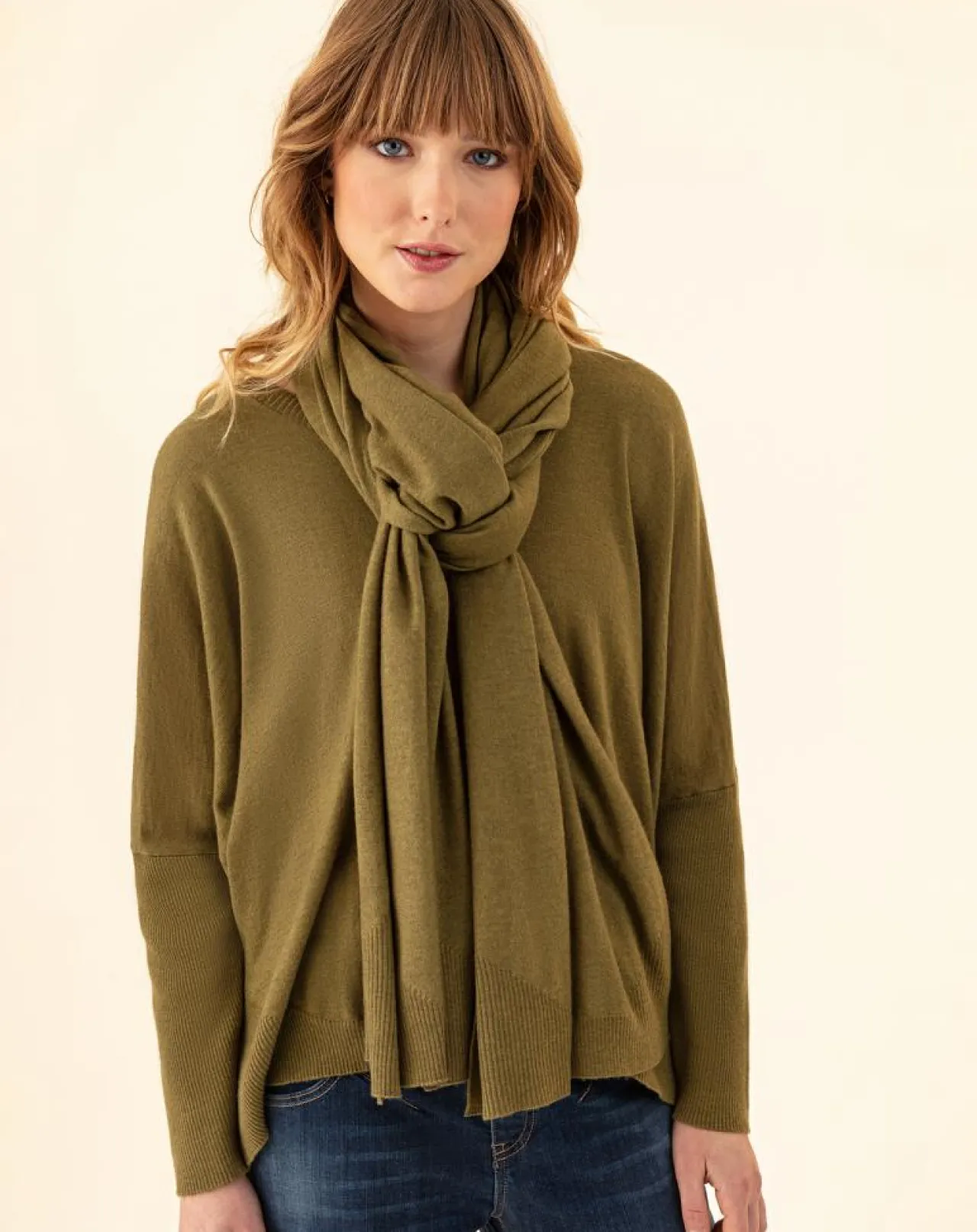 Découvrez notre écharpe kaki en laine, un accessoire polyvalent et élégant qui vous tiendra chaud avec style