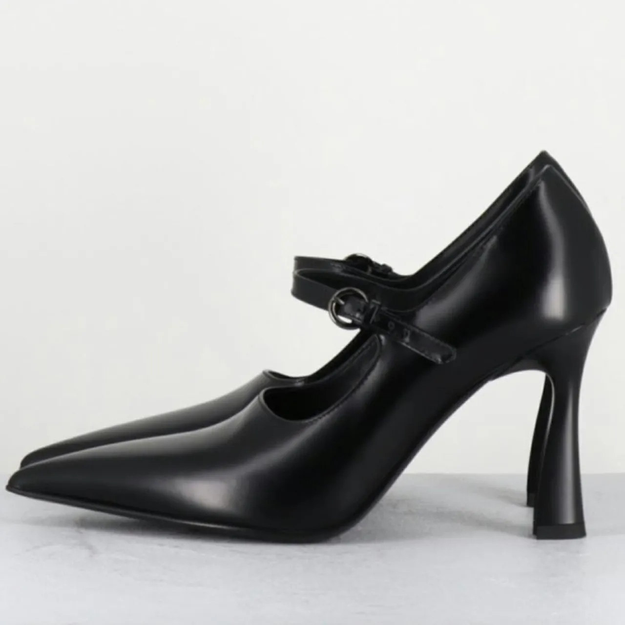 Escarpins bout pointu en cuir légèrement glacé noir