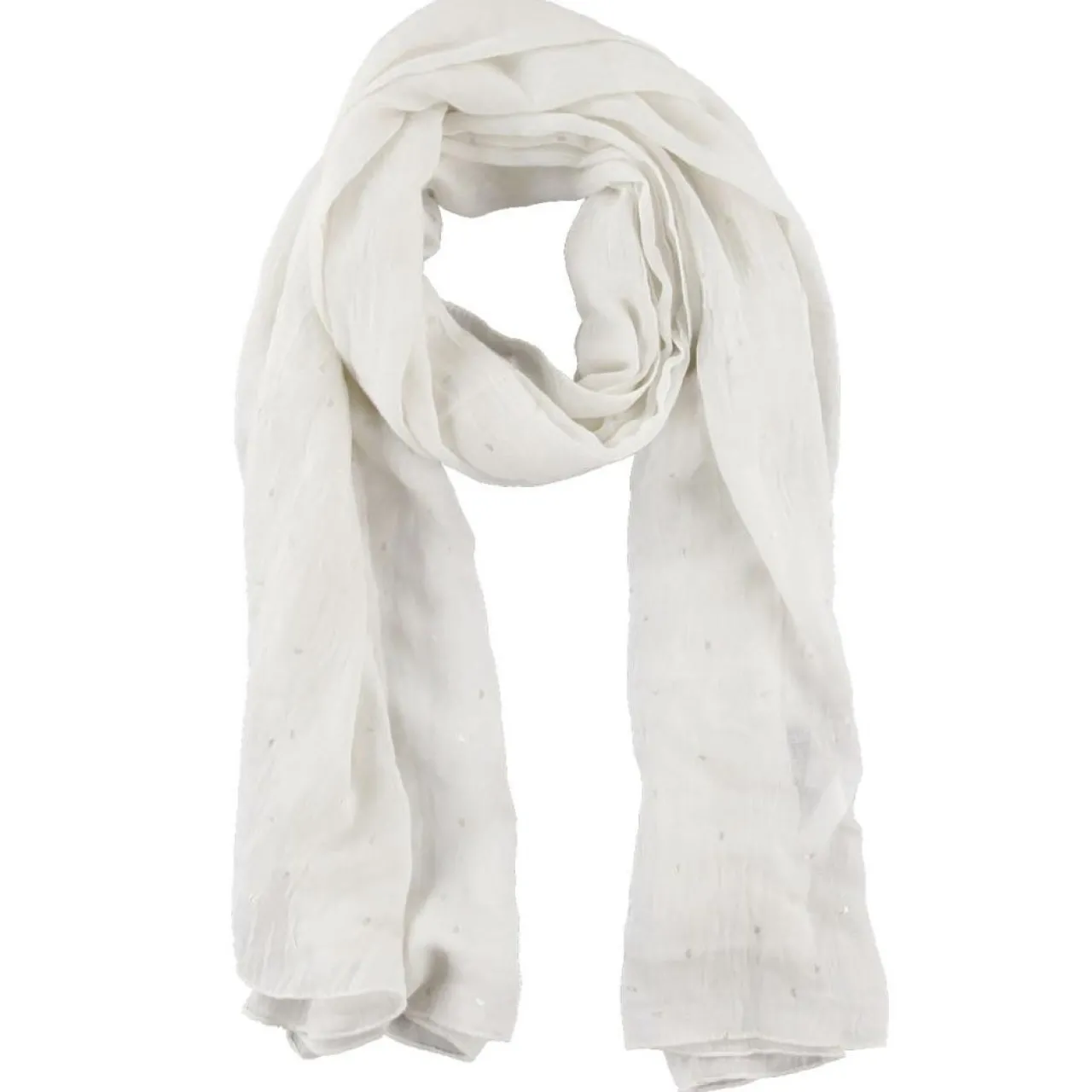 Cette étole Galeries Lafayette en matière synthétique présente des pastilles métallisées all over.