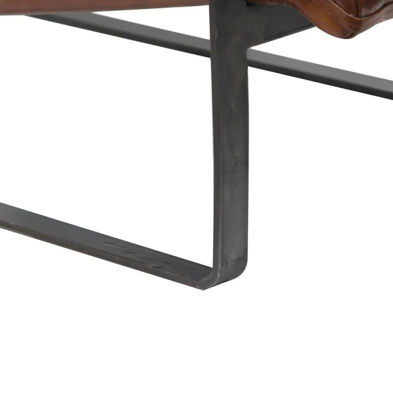 Le piétement en métal avec une finition en peinture poudrée noire ajoute une touche de modernité et de sophistication à l’ensemble, créant un contraste élégant avec le cuir marron riche