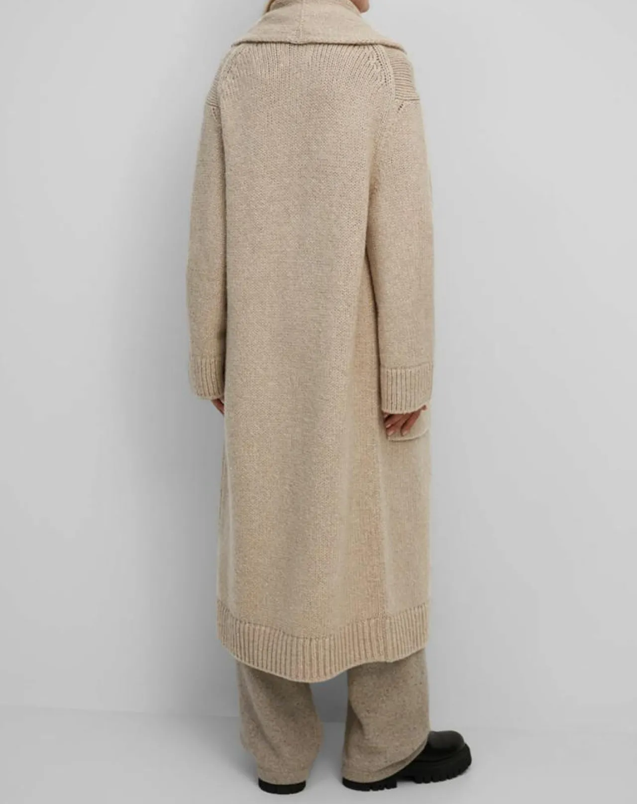 Notre uniforme mode préféré lors de la saison fraîche ? Les cardigans longs super décontractés et les grosses bottines ! Confortable, casual et douillet, le manteau en maille est confectionné en laine vierge mélangée de premier choix.