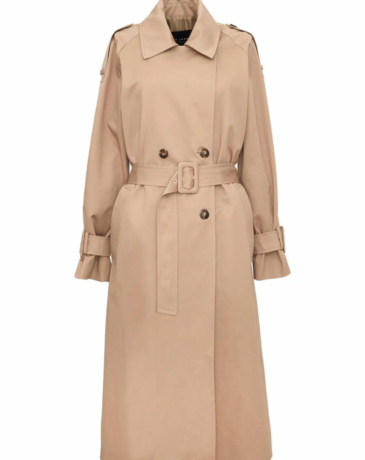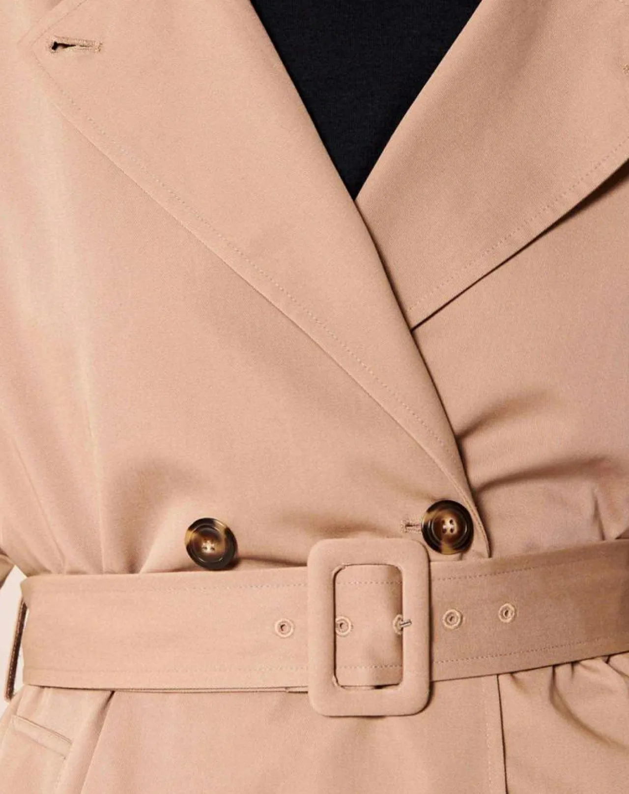 Pièce idéale et intemporelle de la mi-saison, ce trench beige en gabardine de coton reprend tous les codes classiques du trench avec son col à revers, sa fermeture à double boutonnage, ses boutons écaille mats et sa ceinture ton sur ton