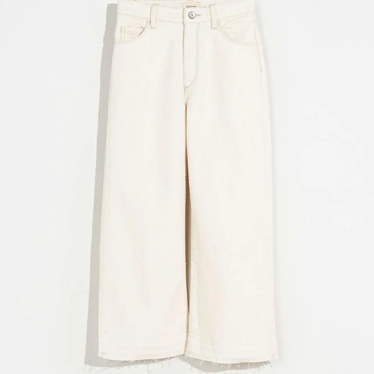 Confectionné en denim de coton mélangé coloris naturel, c’est un essentiel vintage qu’elle pourra accorder avec tous ses hauts
