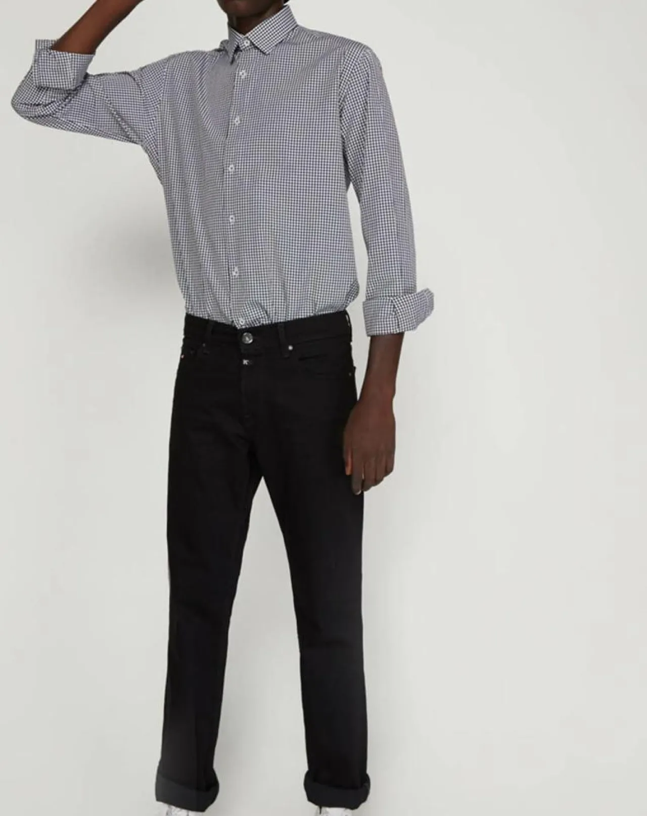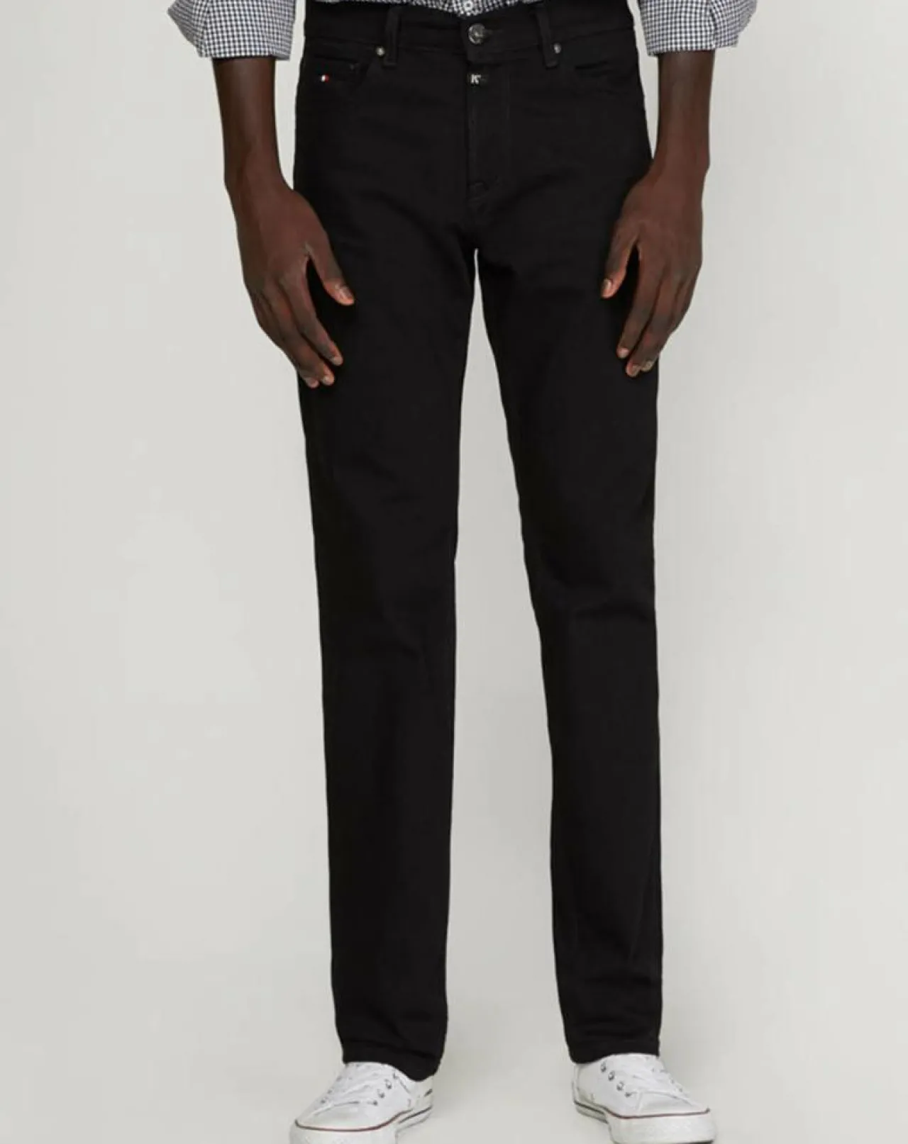 Ce jean droit Kaporal Jeans composé de coton stretch noir est muni de 3 poches sur l’avant, de 2 poches plaquées sur l’arrière, d’une fermeture zippée rehaussée d’un bouton siglé et de passants pour ceinture.
