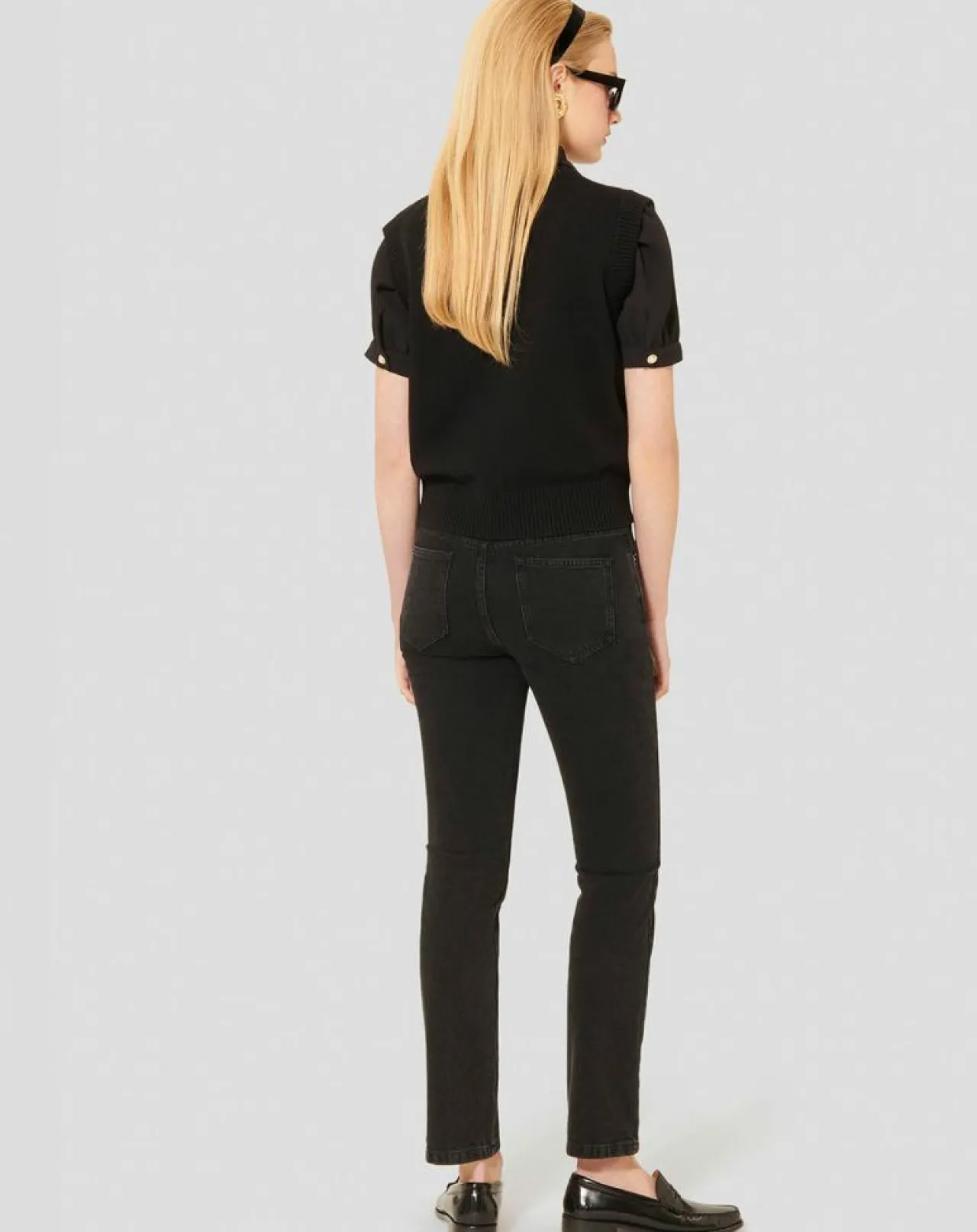 Basique de la garde-robe, ce jean slim noir brut est coupe 7/8
