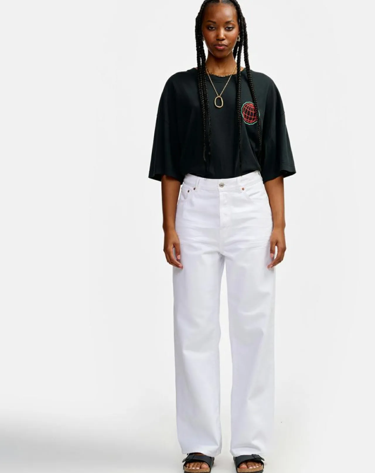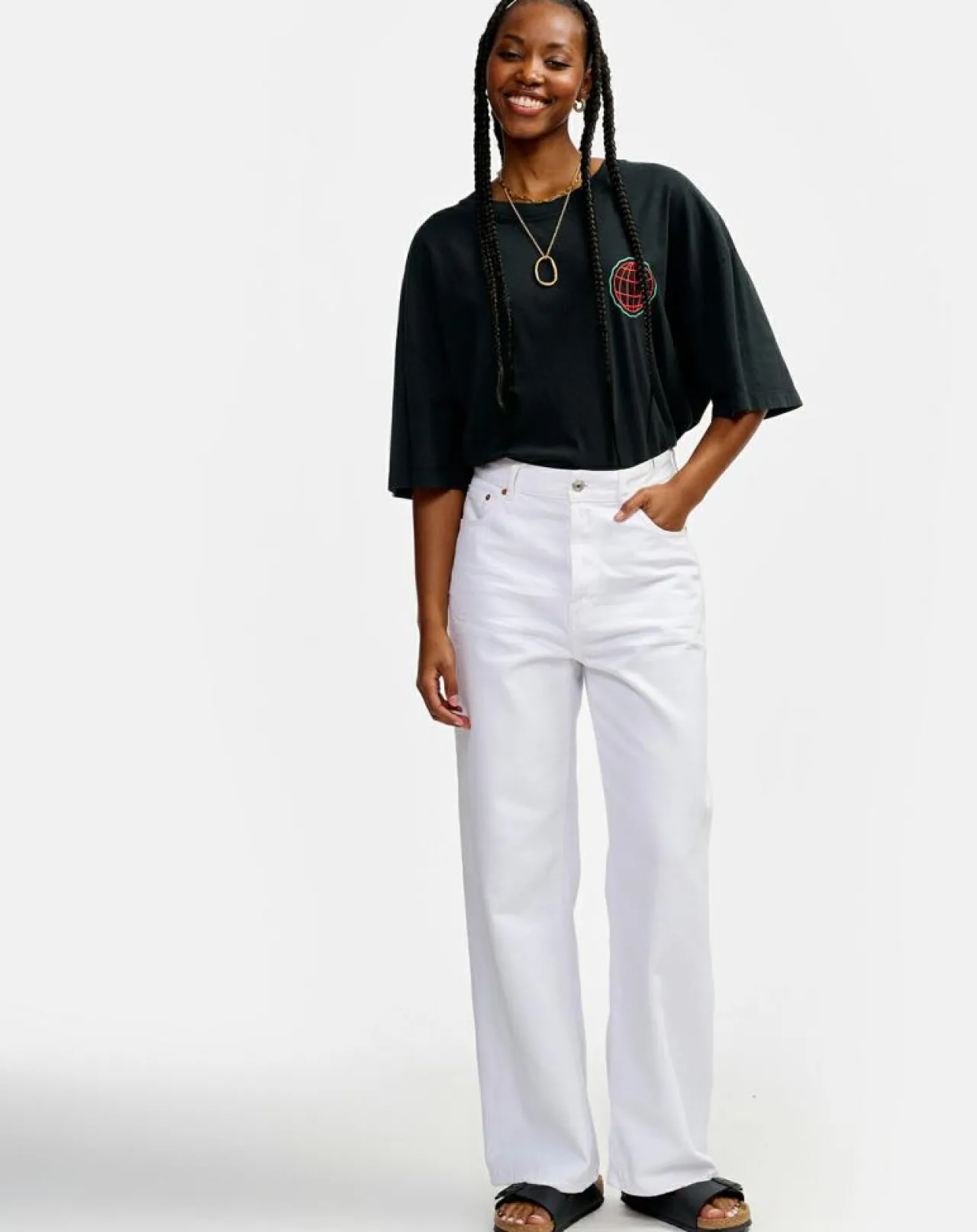 A chaque denim son design. Confectionné en pur coton, le jean Paty s’inspire des années 2000 avec un style 5 poches à jambes larges. Des plis »moustaches » imprimés au laser renforcent son côté vintage. Complétez le look avec un t-shirt oversize.